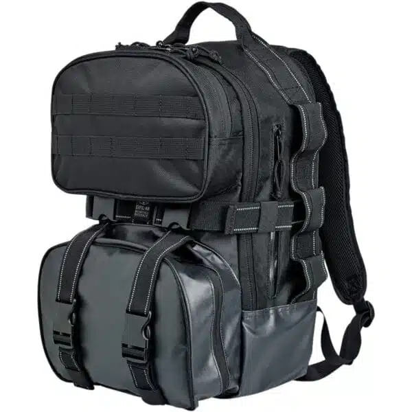 - External straps can be used to add a bedroll, jacket or skateboard to the bag