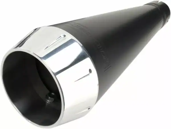 - 4″ true reverse-cone megaphone muffler with a polished billet end cap