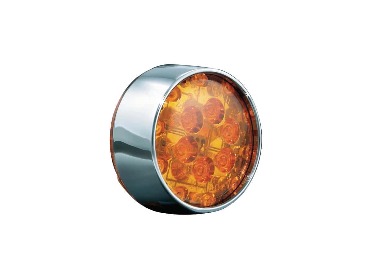 Kuryakyn, Flat-Style Turn Signal Insert Chrome Amber LED, 94-97, 07-10, 12-13 FLHTCU, 94-02, 07, 09-13 FLHTC, 94-03, 07-10, 13, 16 FLHR, 94-95 FLTCU, 96-00, 02-03, 07-09 FLHT, 96-97, 00-02, 04-06 FLHRI, 96 FLTCUI, 97-06 FLHTCUI, 98-06 FLHRCI, 99-02 FLTR, 99-02 FLTRI, 02, 04-05 FLHTCI, 02 FLHRSEI, 03-04, 06 FLHTI, 04 FLHTCSE, 04-06 FLHRSI, 05 FLHTCSE2, 06 FLHTCUSE, 07 FLHTCUSE2, 07-13 FLHRC, 07 FLHRS, 07 FLHRSE3, 08 FLHTCUSE3, 08 FLHRSE4, 09 FLHTCUSE4, 10 FLHTCUSE5, 10-13 FLHTK, 11 FLHTCUSE6, 12 FLHTCUSE7, 13 FLHTCUSE8, 13 FLHTK ANV, 13 FLHRSE5, 94-03, 07-12, 14-16 FLSTC, 94-96 FLSTN, 01-06 FLSTCI, 13 FLSTC 103, 13 FLSTC 103 ANV