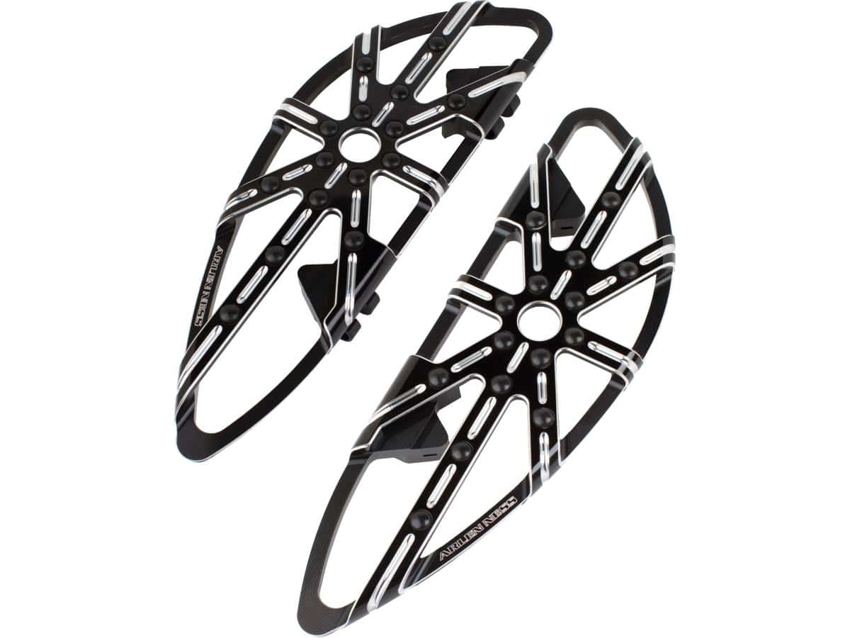 Arlen Ness, 10-Gauge Driver Floorboards Black Cut Anodized, 10-Gauge Driver Floorboards Black Cut Anodized