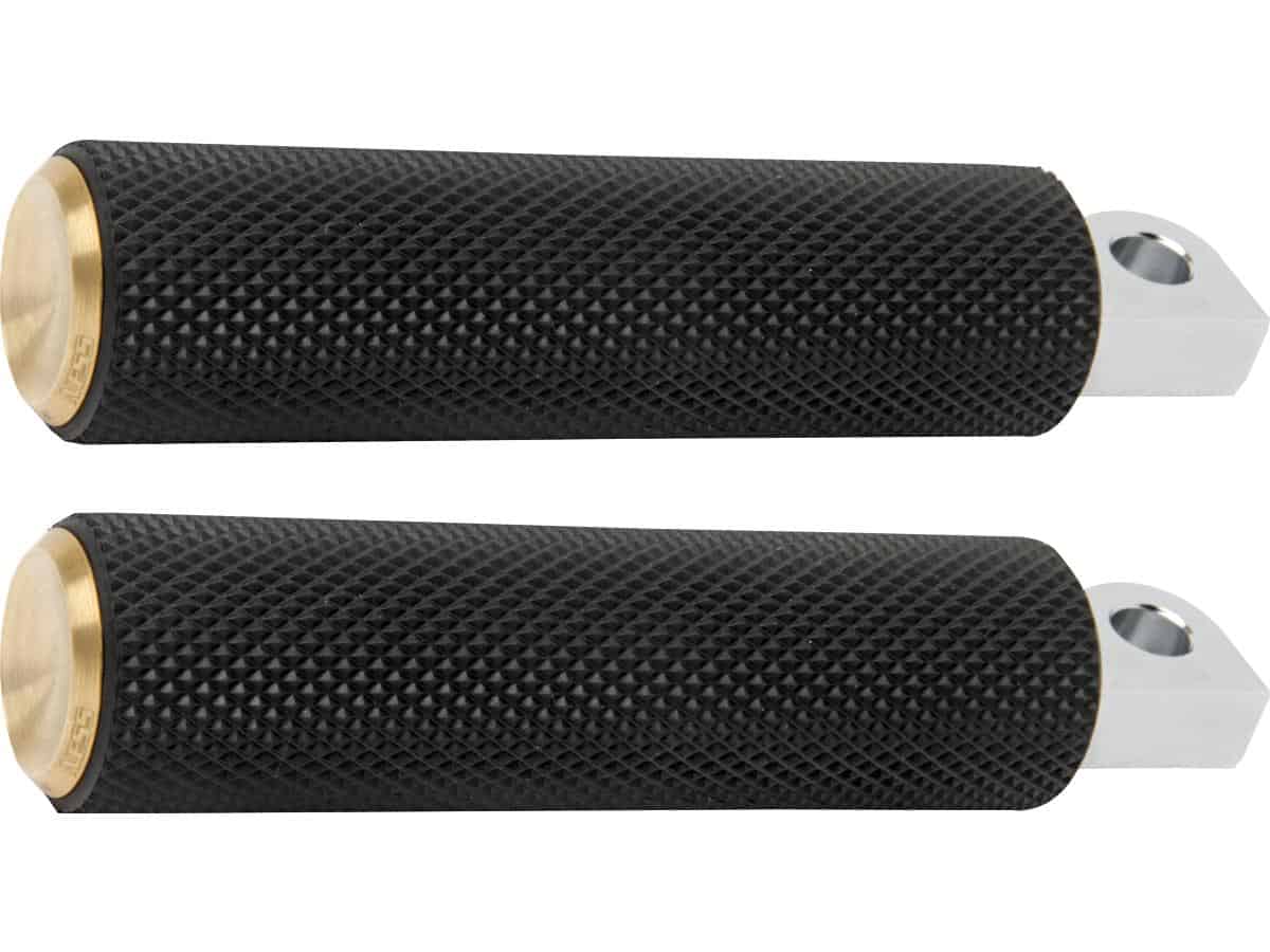 Arlen Ness, Knurled Rubber Footpegs Black Rubber, Brass Endcap, Knurled Rubber Footpegs Black Rubber, Brass Endcap
