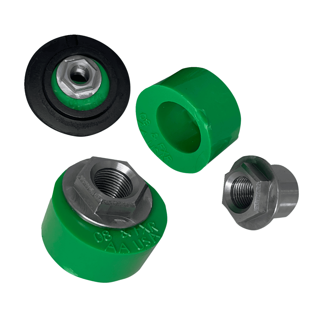 - The black swingarm isolator bushings pictured are not included in the kit.