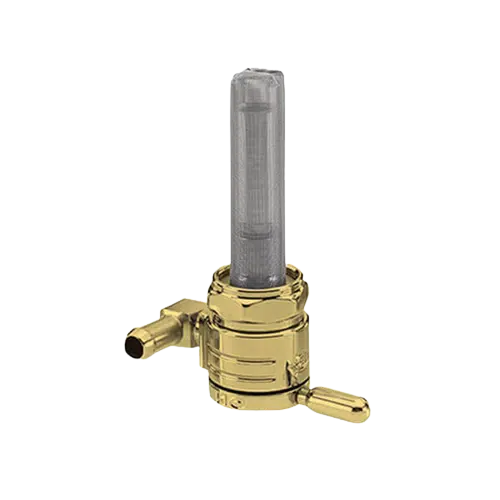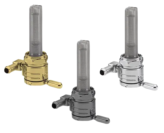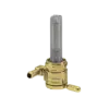 Forward outlet. Constructed from 360 brass with stainless steel ball bearings to eliminate rough, sticky or even frozen valve action. Between on, reserve and off. A special, easy to feel, detent will keep the fuel selector from accidental shifting from motor vibrations. Large 180 degree between on and reserve position for safety. O-ring seating will secure the fuel valve from leaking. Flow rate approx. 112 oz (3175 gram) per minute. Comes with a 5/16″ fuel hose connection.