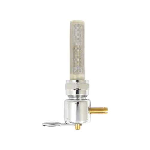 Chrome; right outlet; for 1/4″ (6.4mm) fuel hose; with filter & reserve; 22mm threaded with nut. Why not have a custom petcock that looks like a million bucks? The Monster-Show is a high quality with a show compatible design. Comes with filter & reserve. The easy to operate fuel selector lever is equipped with a subtle ‘click-feel’ for positive placement of the lever from off to on or reserve. Fits stock fuel tanks in combination with standard 1/4″ ID fuel hose. Note: Bottom side image is shown for an additional visual reference in ‘lever’ vs ‘nipple’ location. Left, right & down is referring to fuel nipple direction when looking at the petcock lever in ‘off’ position.