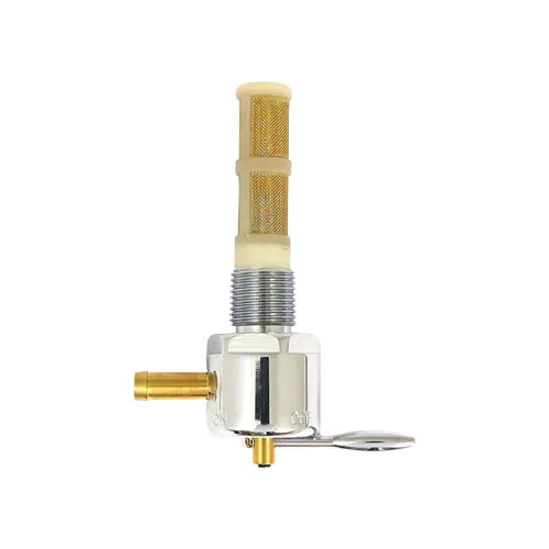 Chrome; left outlet; for 1/4″ (6.4mm) fuel hose; with filter & reserve; 3/8 NPT threaded. Why not have a custom petcock that looks like a million bucks? The Monster-Show is a high quality with a show compatible design. Comes with filter & reserve. The easy to operate fuel selector lever is equipped with a subtle ‘click-feel’ for positive placement of the lever from off to on or reserve. Fits stock fuel tanks in combination with standard 1/4″ ID fuel hose. Note: Bottom side image is shown for an additional visual reference in ‘lever’ vs ‘nipple’ location. Left, right & down is referring to fuel nipple direction when looking at the petcock lever in ‘off’ position.