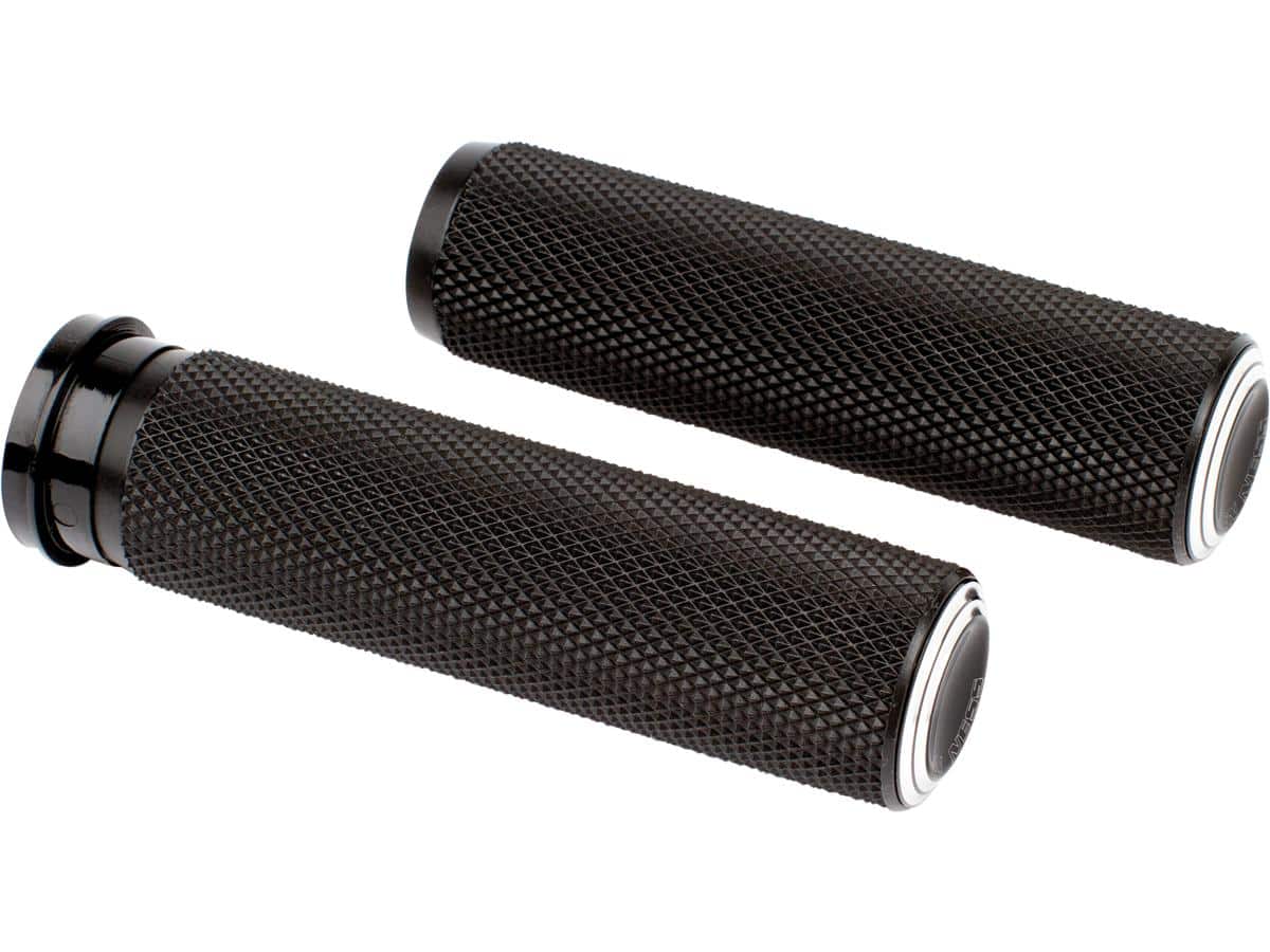 Grips Black E-Throttle for: 08-24 Touring, 25 FLHRXS, (except 23 FLTRKSEANV, 23-24 FLHXSE, 23-24 FLTRXSE, 24 FLHX, 24 FLTRX, 24 FLTRXSTSE), 09-25 Trike, 16-24 Softail, 11 FLSTSE2, 12 FLSTSE3, 13-14 FXSBSE, 14-15 FLSTNSE, 16-17 FXDLS
