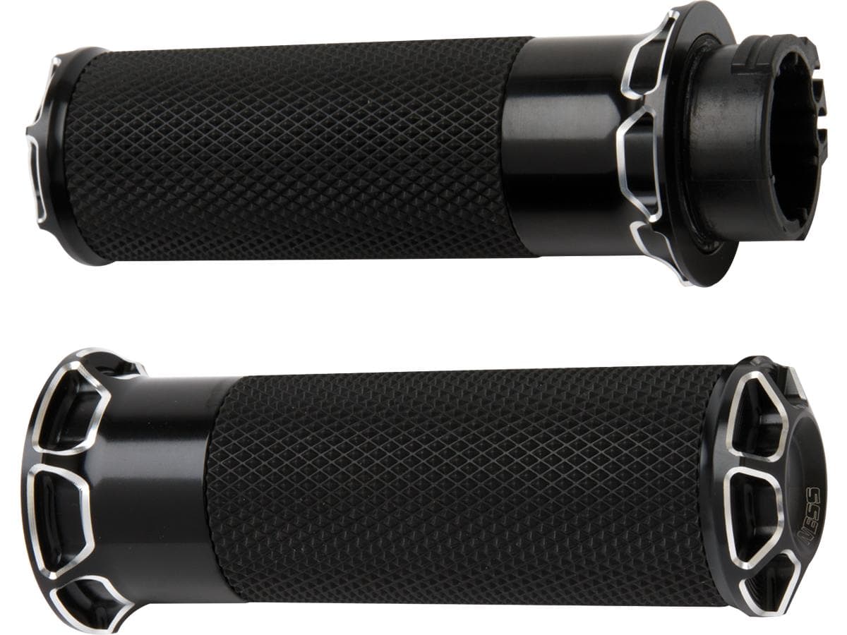 Arlen Ness, Beveled Fusion Grips Black Anodized 1″ Throttle Cables, Beveled Fusion Grips Black Anodized 1″ Throttle Cables
