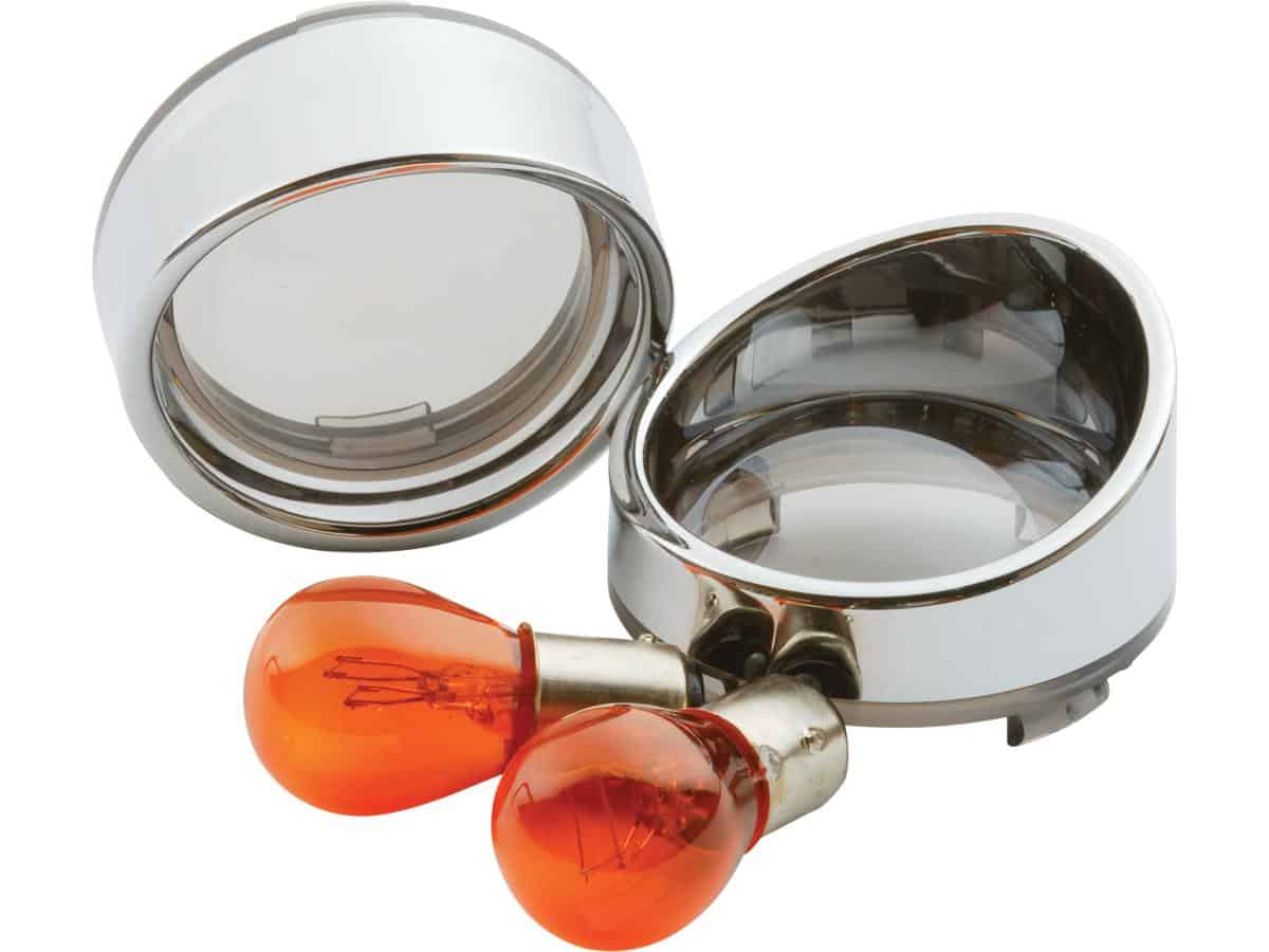 CCE, Visor Bezel Kit for Deuce Style Turn Signals Smoke lens, with amber bulb, single filament Chrome, Visor Bezel Kit for Deuce Style Turn Signals Smoke lens, with amber bulb, single filament Chrome