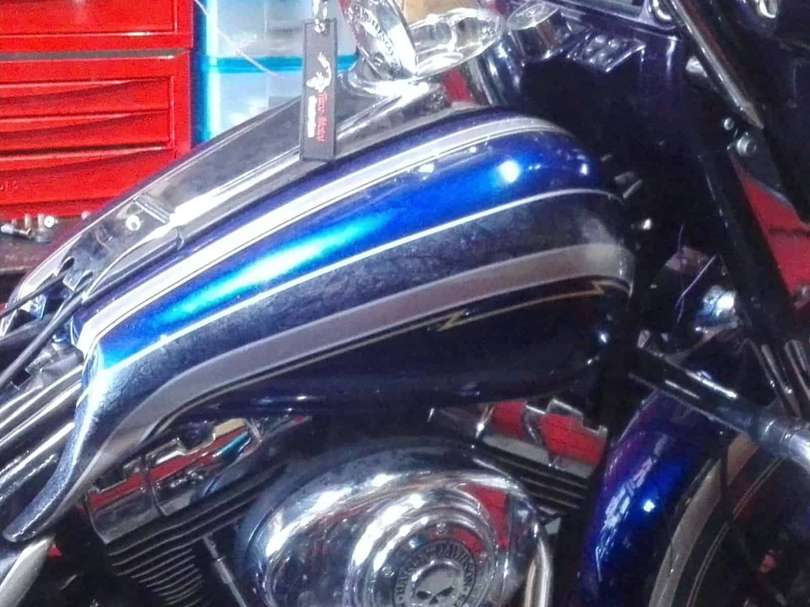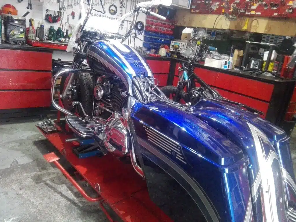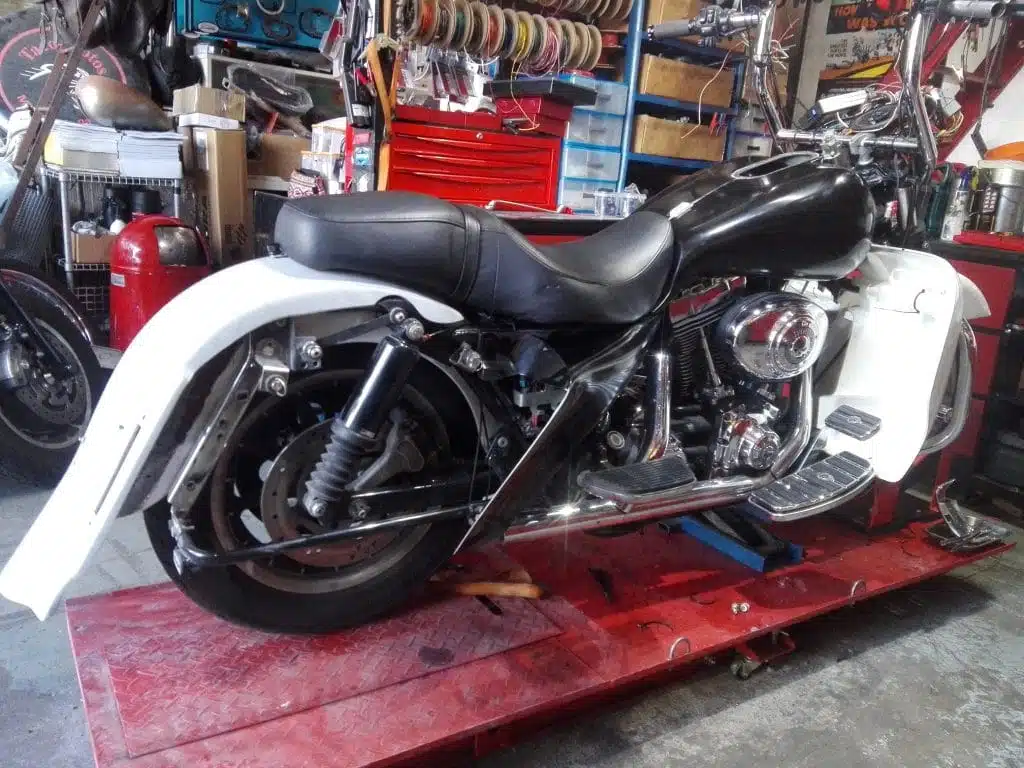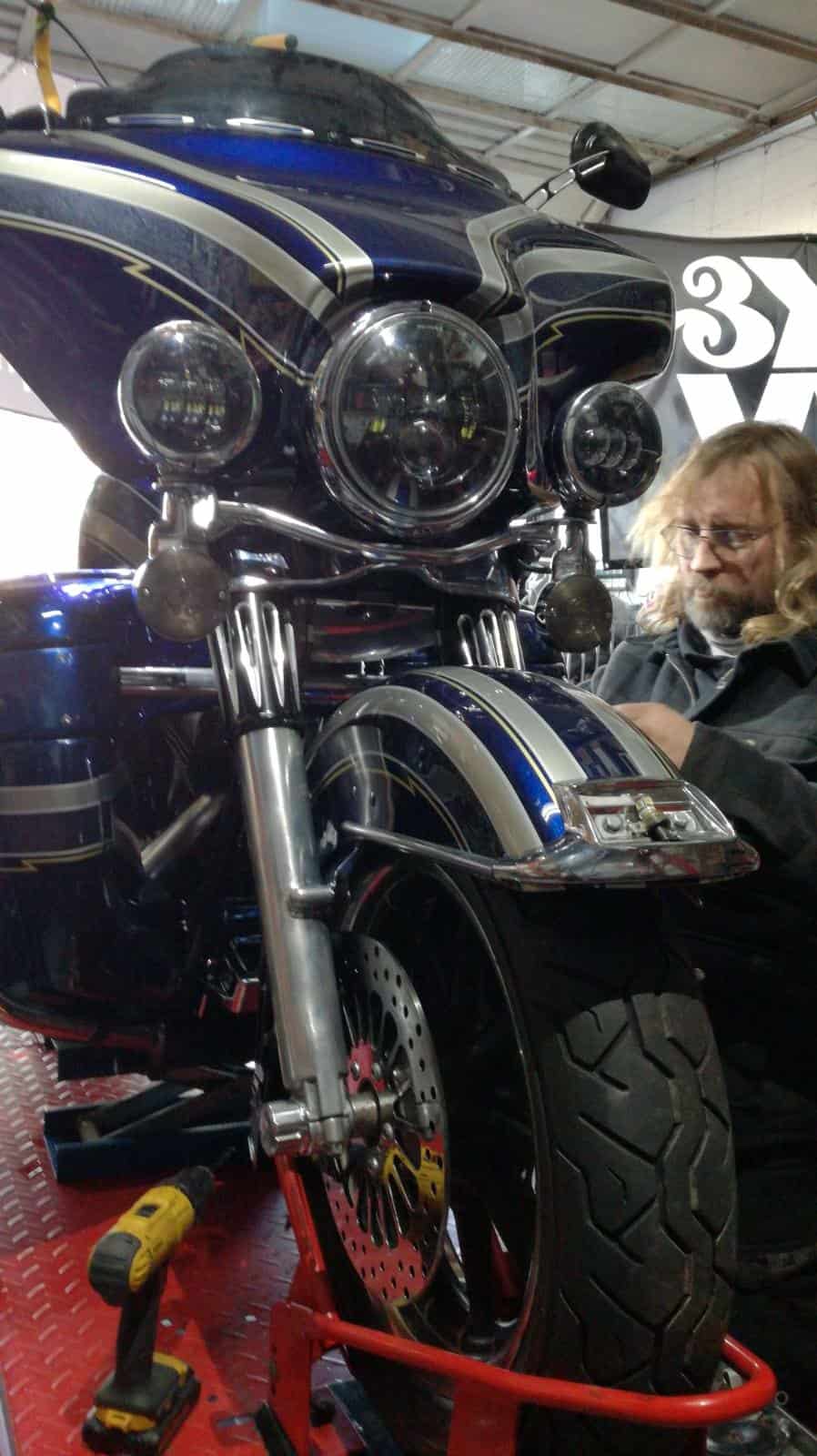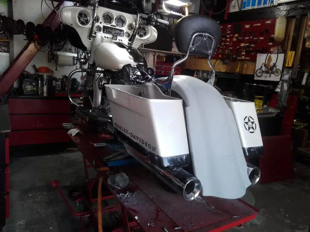 Alex’s Touring customized and repainted to a eye catching bagger