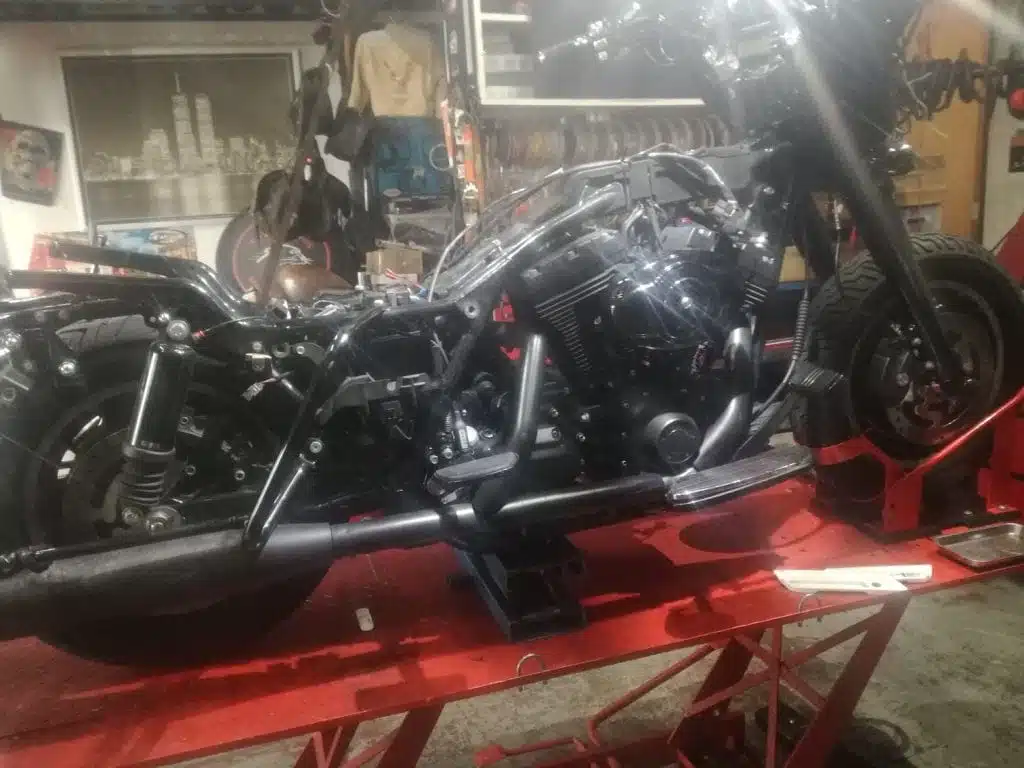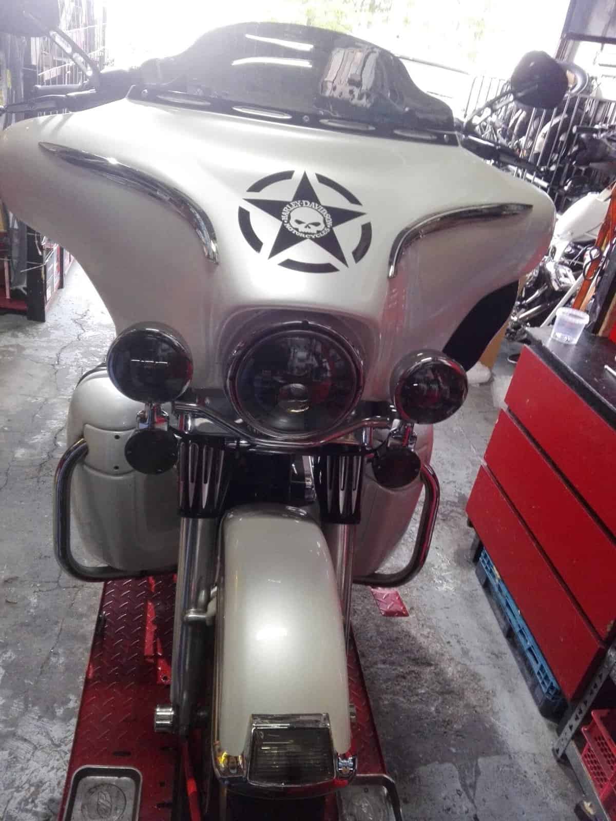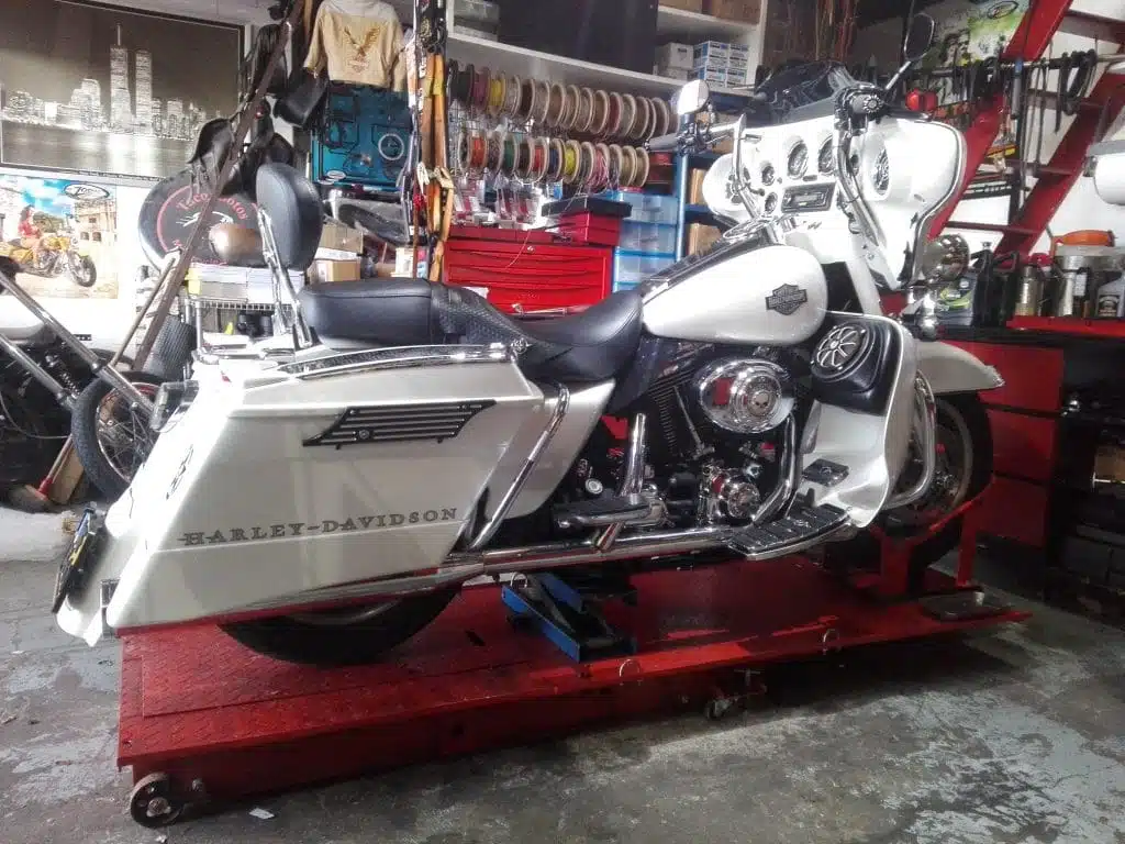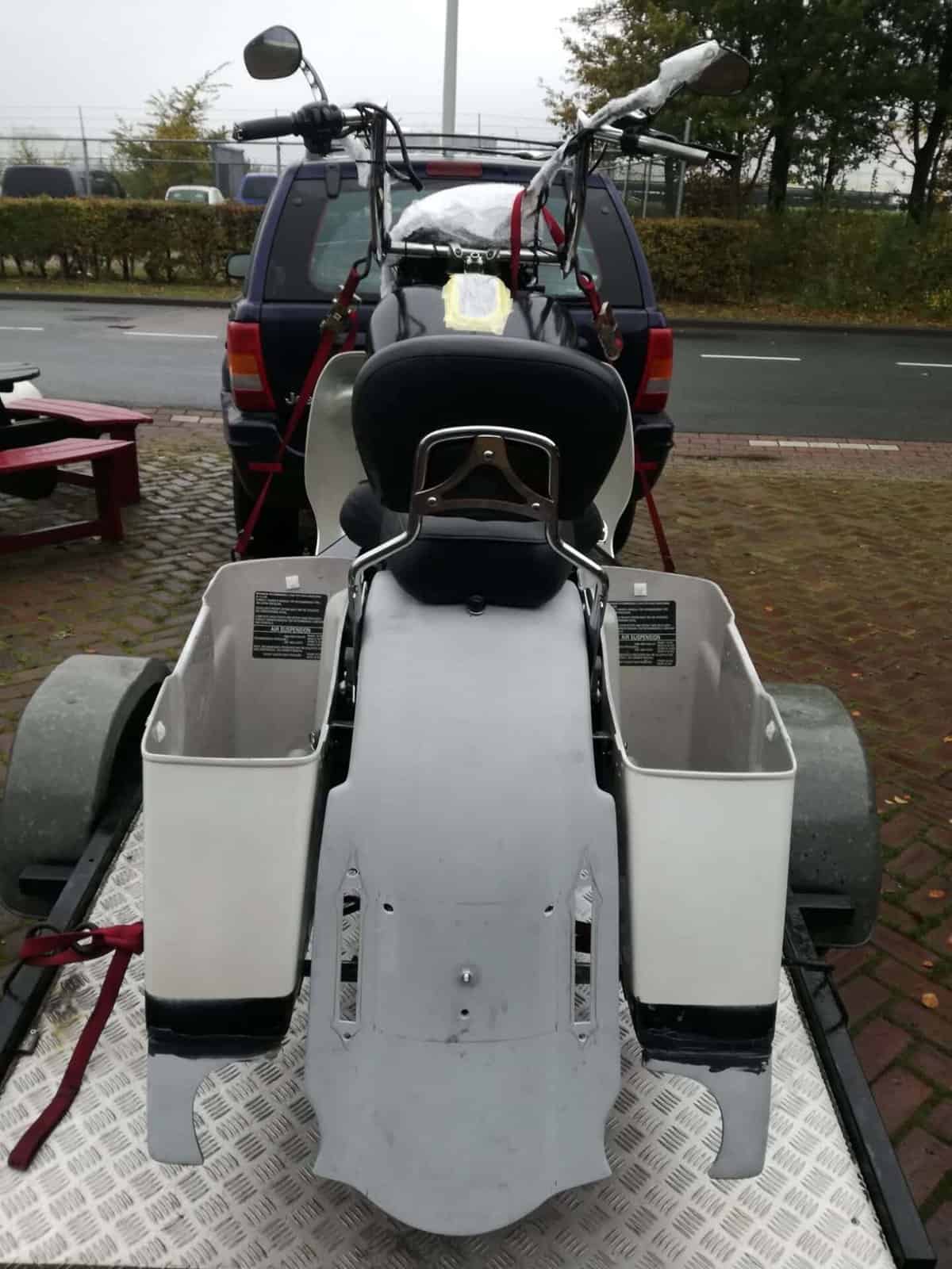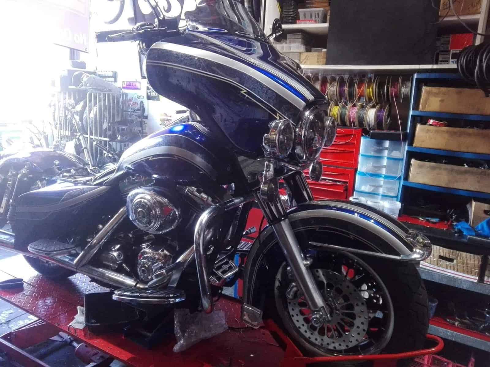 Alex’s Touring customized and repainted to a eye catching bagger