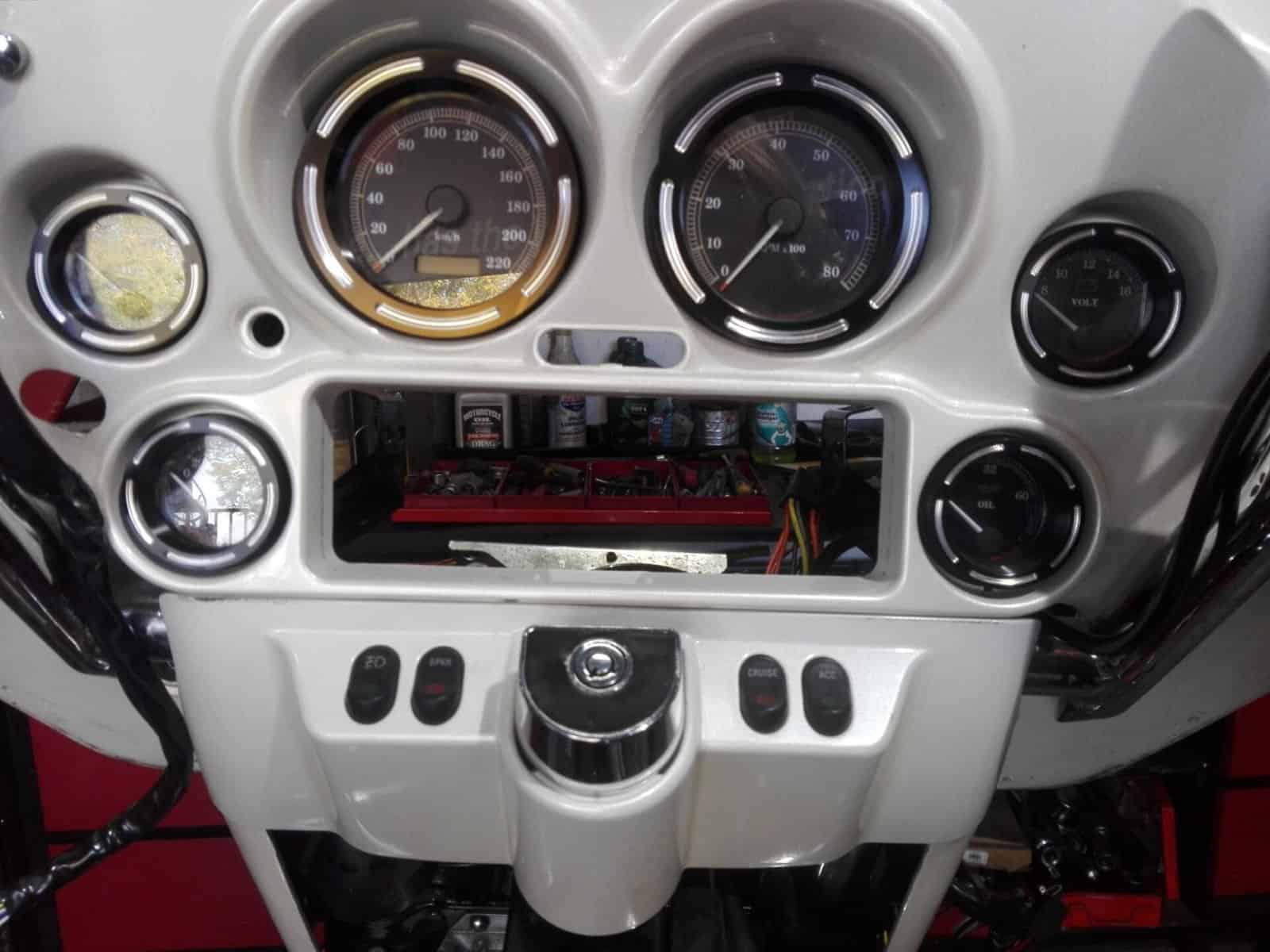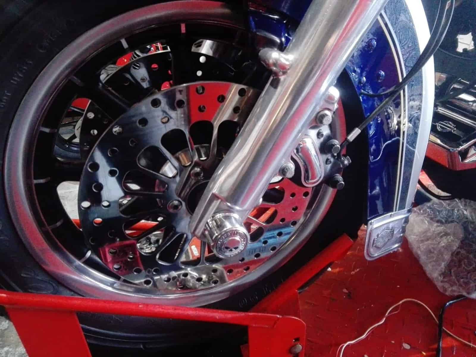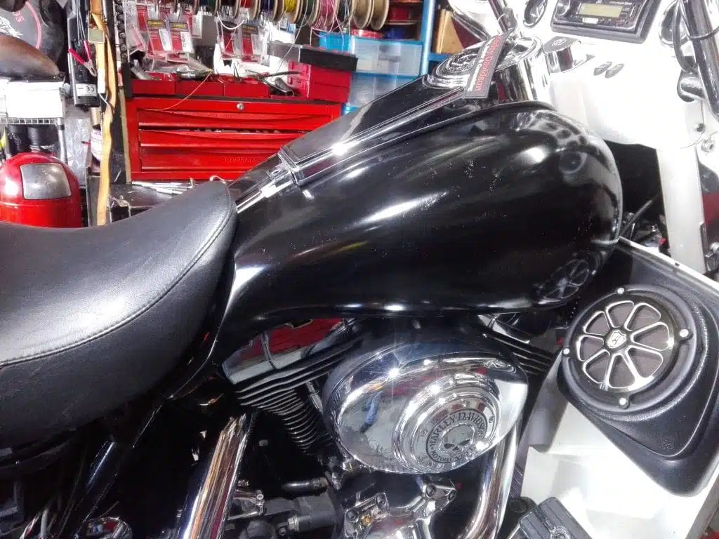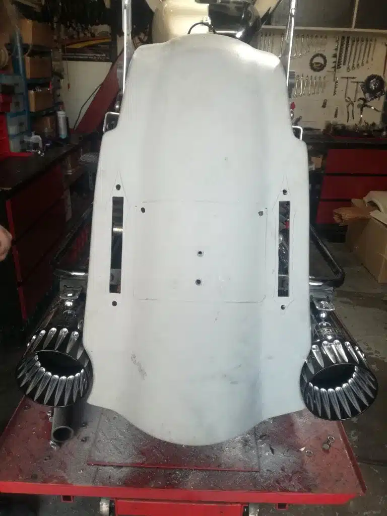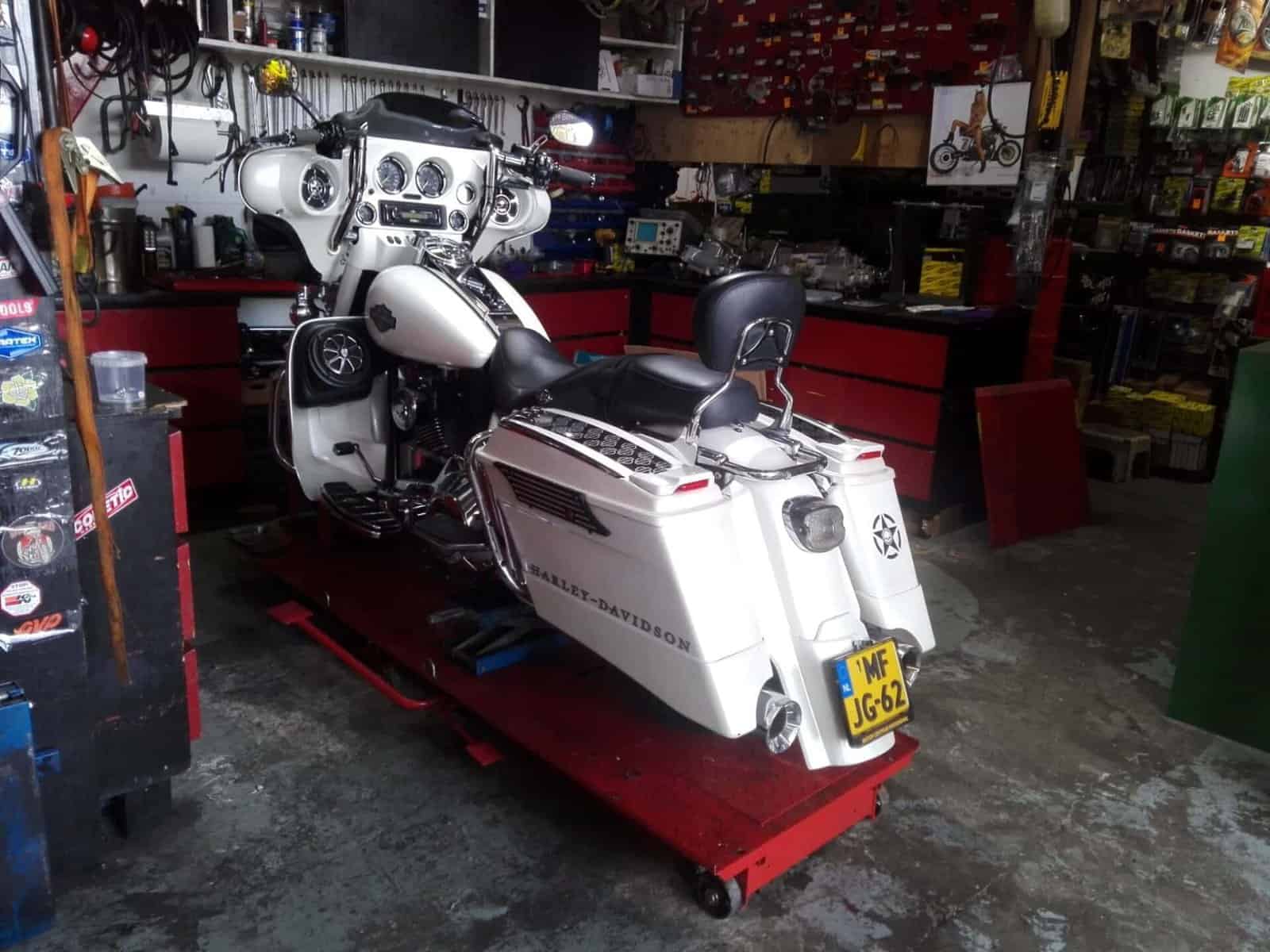 Alex’s Touring customized and repainted to a eye catching bagger