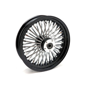 48 fat spoke rear wheel 5.50 x 18 Black with chrome spokes Fits: > 02-07 FLT/Touring; 02-06 V-Rod