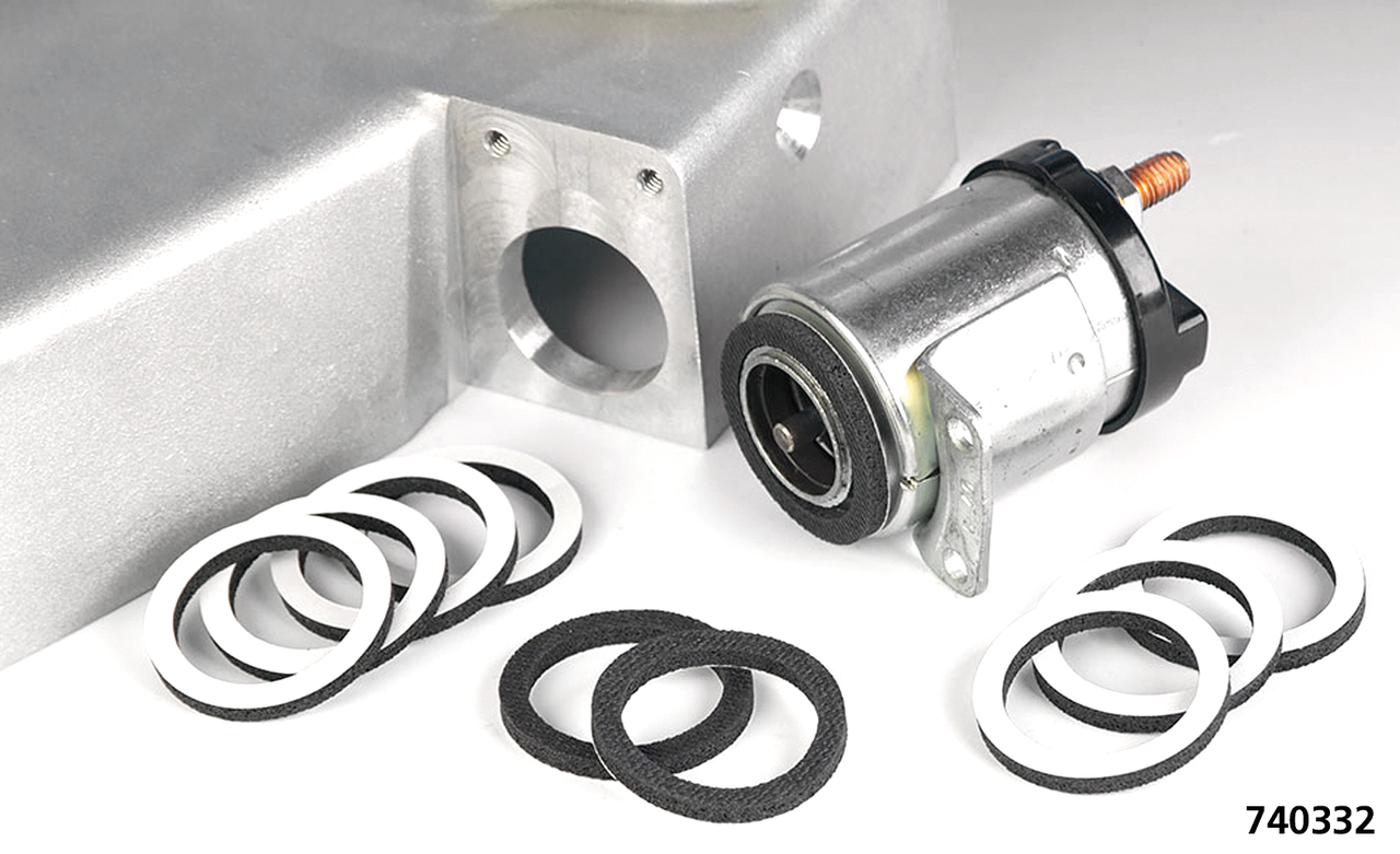 Solenoid plunger assembly kit includes plunger boot, plunger, plunger shaft, retainer, springs, spacer, mount gasket, pins, screws, and lock washers. Fits 1967-1980 Sportster, 1982-1988 FXR, 1965-1984 FL, 1971-1984 FX, 1984-1988 FXST, 1979-1988 FLT and 1986-1988 FLST.