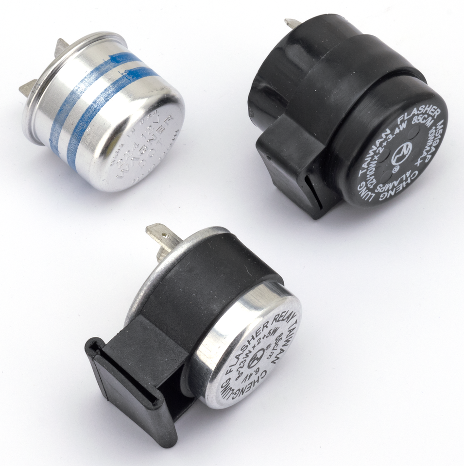 These round style OEM replacement turn signal flashers fit most models from 1961-1995.