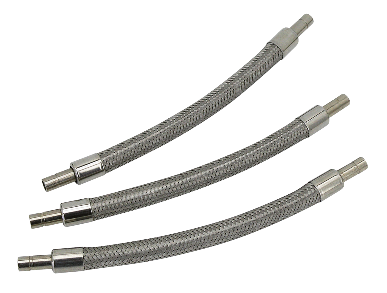 Braided Stainless Steel hoses These braided hoses come in sets of 3 and feature OEM type factory crimped spigots. Oil pump and oil tank fittings must be ordered separately., 16″ (40cm) long, 16″ braided stainless hose w/pipe end,