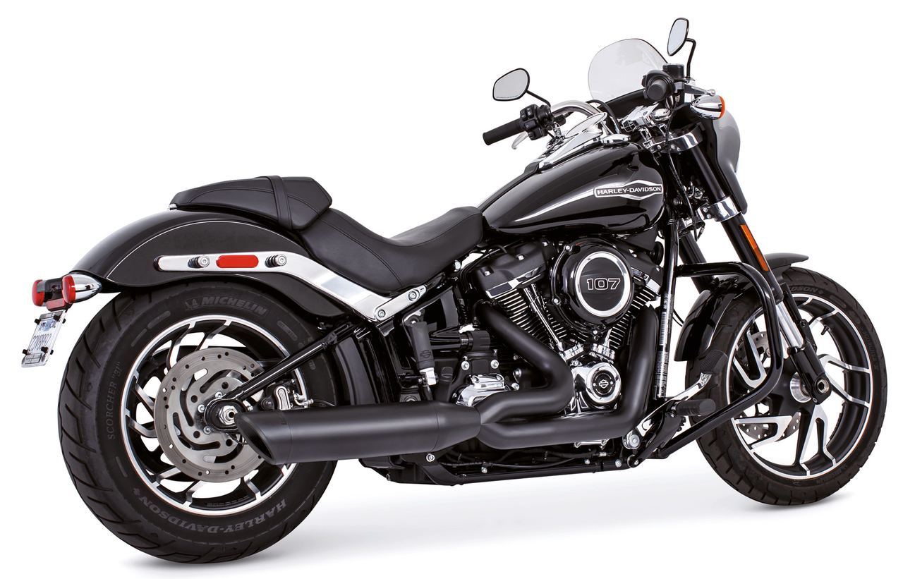 2018 to present SoftailRace versionRequires adapters when installed on FLHC & FLHCS Heritage, FLI Hydra-Glide Revival, FLSB Sport Glide and FXLRST Low Rider ST models with saddlebag supportsTo mount on FLFB Fat Boy or FXBR Breakout the passenger peg relocation kit must be ordered separately, All black, 2-1 UNION Slash ST18-up pitch black, Freedom Performance Exhaust