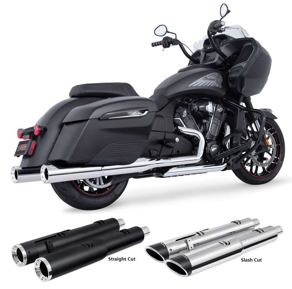 Fits Chieftain & Roadmaster 2014 to present, Springfield 2016 to present, Challenger 2020 to present and Pursuit 2022 to present, All chrome with Straight Cut end caps, 2-STEP S/O’s/STRGHT CH/CH CHLNGR20, Freedom Performance Exhaust