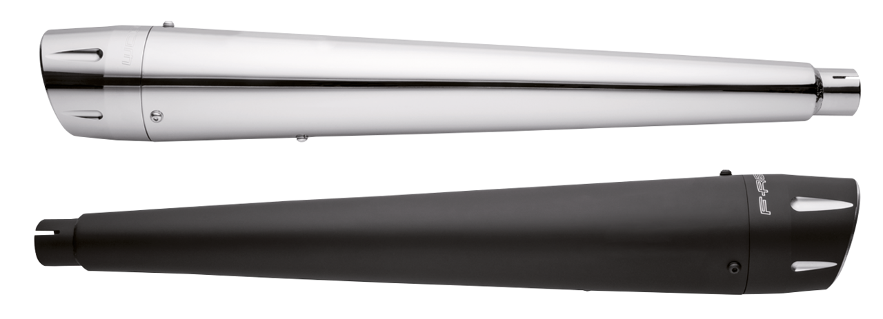 •Feature mufflers with 4 1/2″ (114mm) slash down style billet end caps