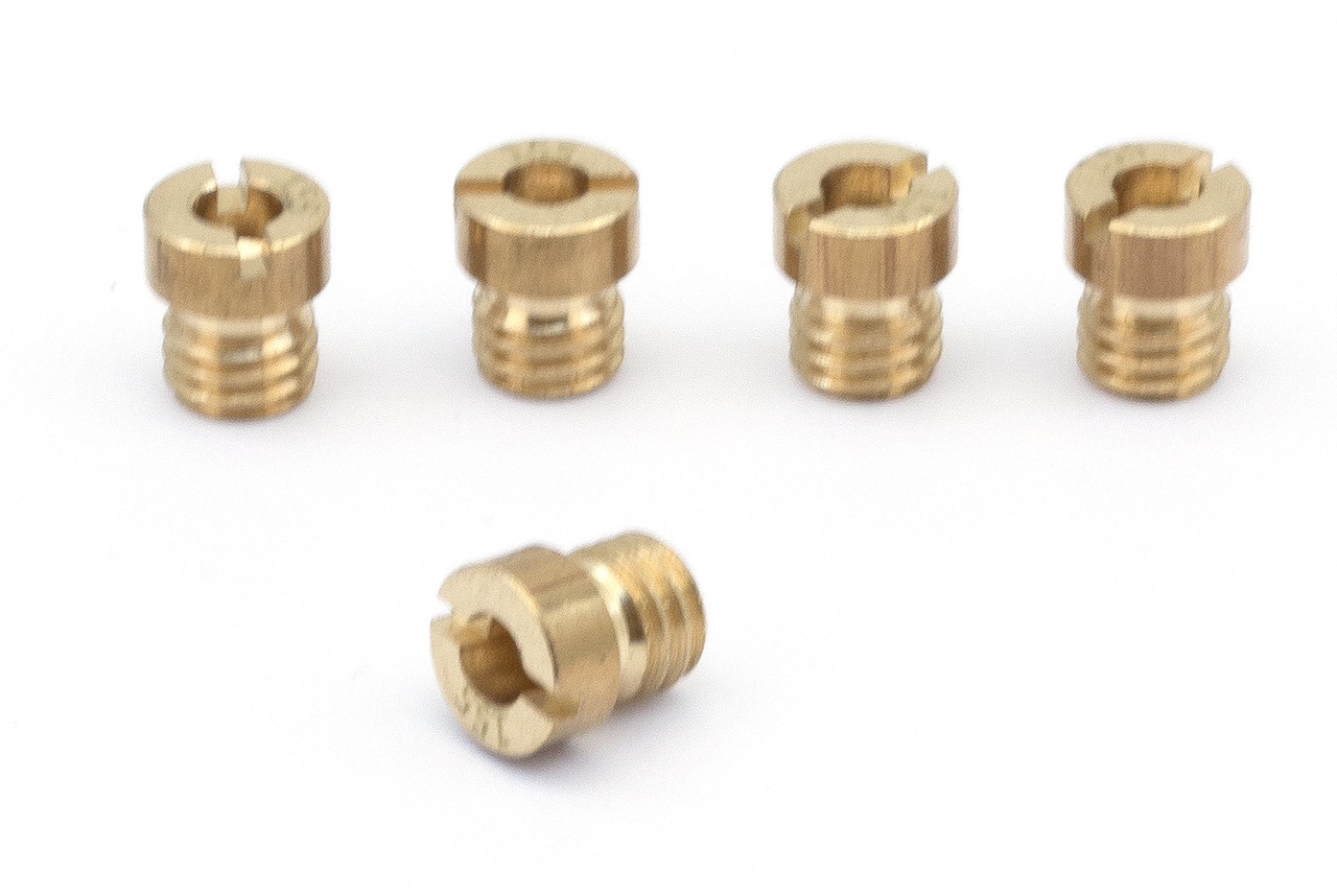 These main and slow jets are available to dealers in an assortment box, containing a total of 140 pieces commonly used main and slow jets, 10 pieces of every size as indicated in the table below. All of these and even more sizes are available in 5-packs. Jets are exactly made to OEM specifications, and are indelibly marked with their size. Note that low speed jets (also known as pilot jet) for Keihin Butterfly and CV carburetors look very much the same but are NOT interchangeable. Butterfly pilot jets have 0.6mm bore bleed holes, whereas those for CV carbs have 0.8mm bore bleed holes. These jets fit all Keihin CV (Constant Vacuum) carburetor equipped Buell 1988-2006, Sportster 1988-2006, Evolution Big Twin 1990-1999 and Twin Cam 1999-2006.