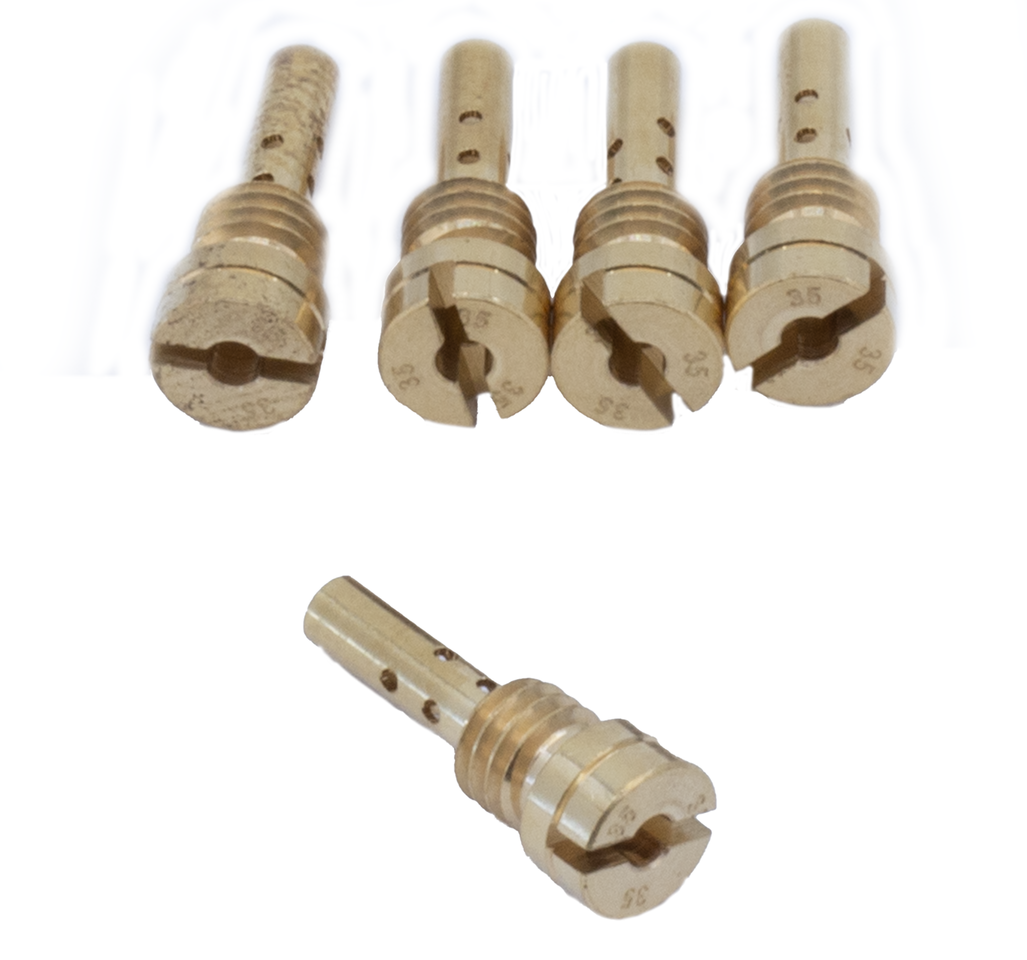 These main and slow jets are available to dealers in an assortment box, containing a total of 140 pieces commonly used main and slow jets, 10 pieces of every size as indicated in the table below. All of these and even more sizes are available in 5-packs. Jets are exactly made to OEM specifications, and are indelibly marked with their size. Note that low speed jets (also known as pilot jet) for Keihin Butterfly and CV carburetors look very much the same but are NOT interchangeable. Butterfly pilot jets have 0.6mm bore bleed holes, whereas those for CV carbs have 0.8mm bore bleed holes. These jets fit all Keihin CV (Constant Vacuum) carburetor equipped Buell 1988-2006, Sportster 1988-2006, Evolution Big Twin 1990-1999 and Twin Cam 1999-2006.