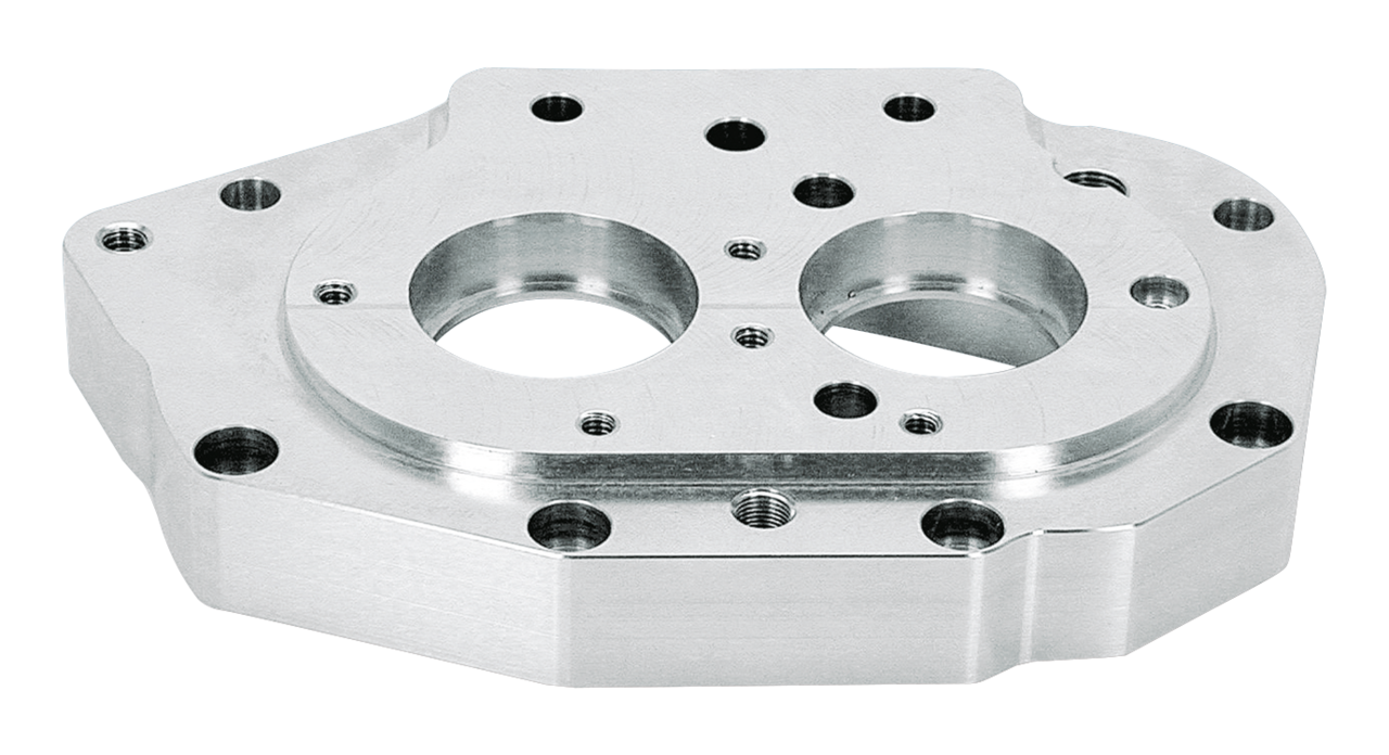 CNC machined from billet aluminum. Features exhaust mounting hole for easy mounting of Dyna type exhaust systems. Uses OEM style bearings and special bearing mount plate (not included). Fits Zodiac 6 Speed transmissions.