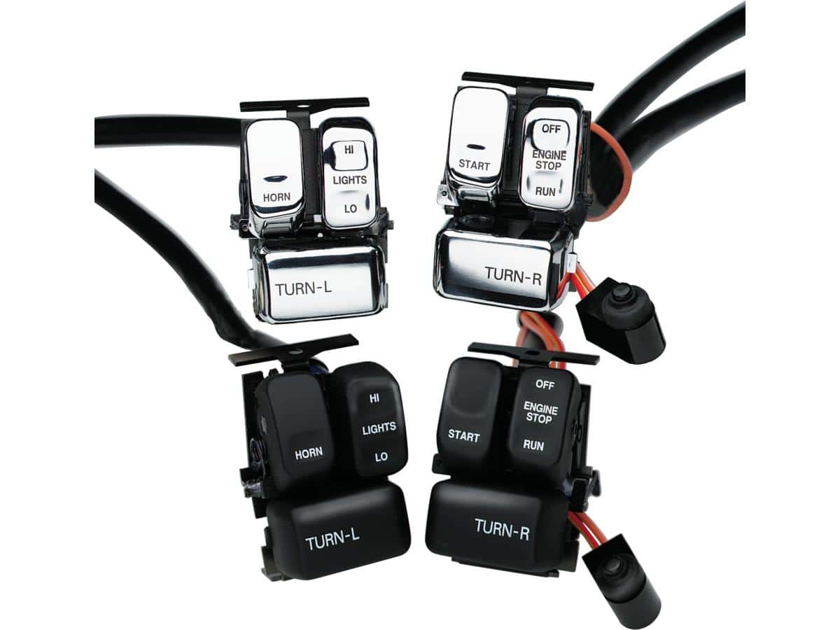 96-up Ergonomic Replacement Engine Horn and Dimmer Switch Horn/Dimmer Switch Chrome, 96-06 Sportster, 96-06 Dyna, 96-06 Softail, 96-06 Touring, 02-06 V-Rod
