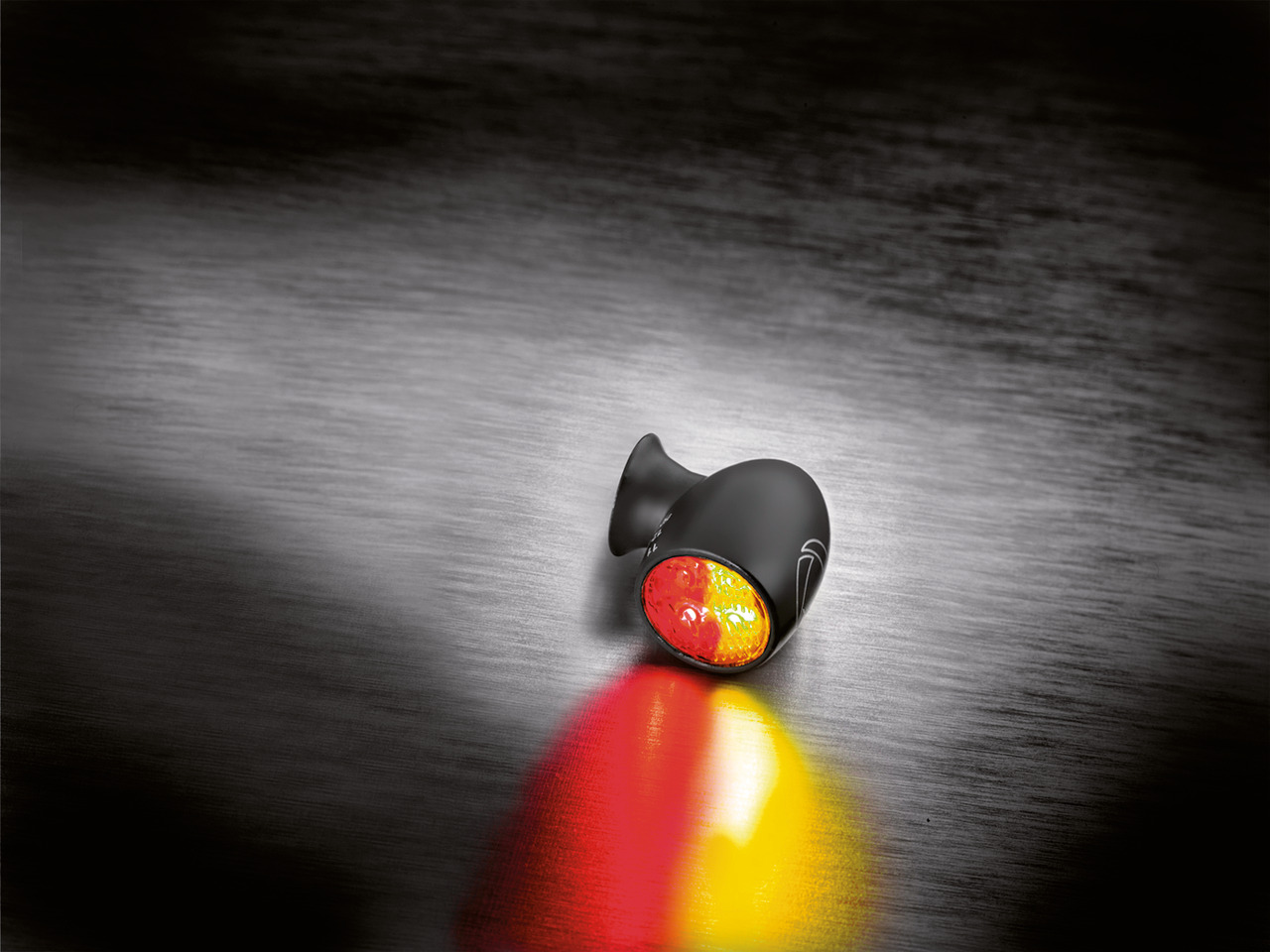 Atto (symbol a) is a unit prefix in the metric system denoting a factor of 0.000000000000000001. OK, this combination brake and taillight is not that small, but with a 13mm diameter the Atto is so small that the lighting surface fits four times on a 1 Eurocent coin. It uses Extreme Optical Transparency technology, providing spectacularly bright lighting lighting. Also available as a white position light that also can be used as front parking light, as well as turn signal. All Atto lights feature a minimalistic M5x6.5 mounting stud and are sold each.