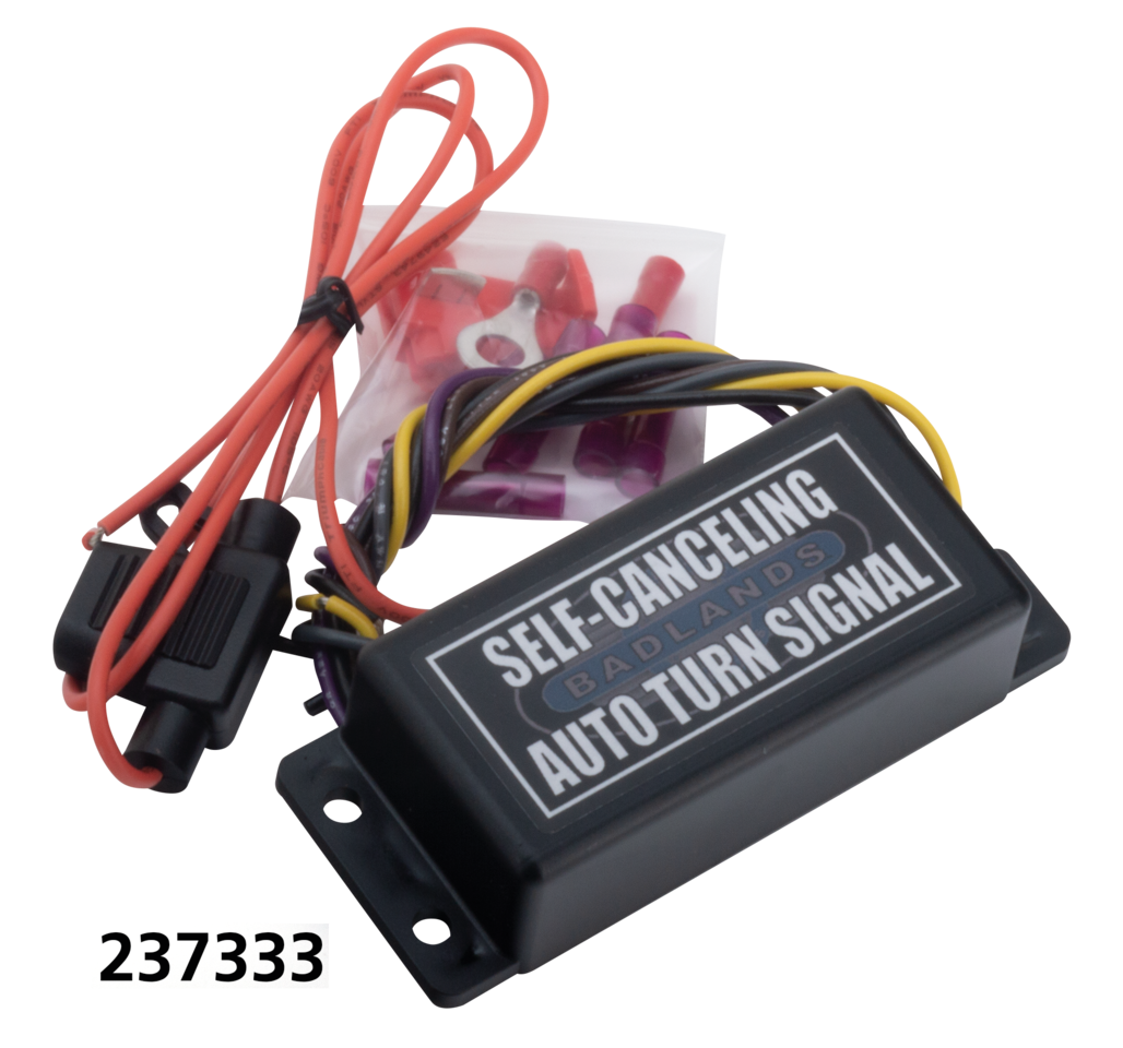 Badlands’ new Turn Signal Command Kit allows you to activate your turn signals by just pushing the button once, NOT holding it down. Your turn signals will flash approximately 9 seconds, with the option to cancel manually. If more time is required you simply reactivate the system by pushing the button again. Badlands’ Command Kit features a built-in flasher relay, and built-in Load Equalizer to operate turn signals from as low as LEDs to up-to 100 Watts per side, as well as an integrated Emergency Flasher. So when you are tired of struggling to hold in your turn signal button, pull in your clutch, operate your throttle and apply your front brake all while making a turn, then the Command Kit is the answer. Also great as a direct replacement for your old broken OEM canceller or when you have removed or replaced your OEM speedo.