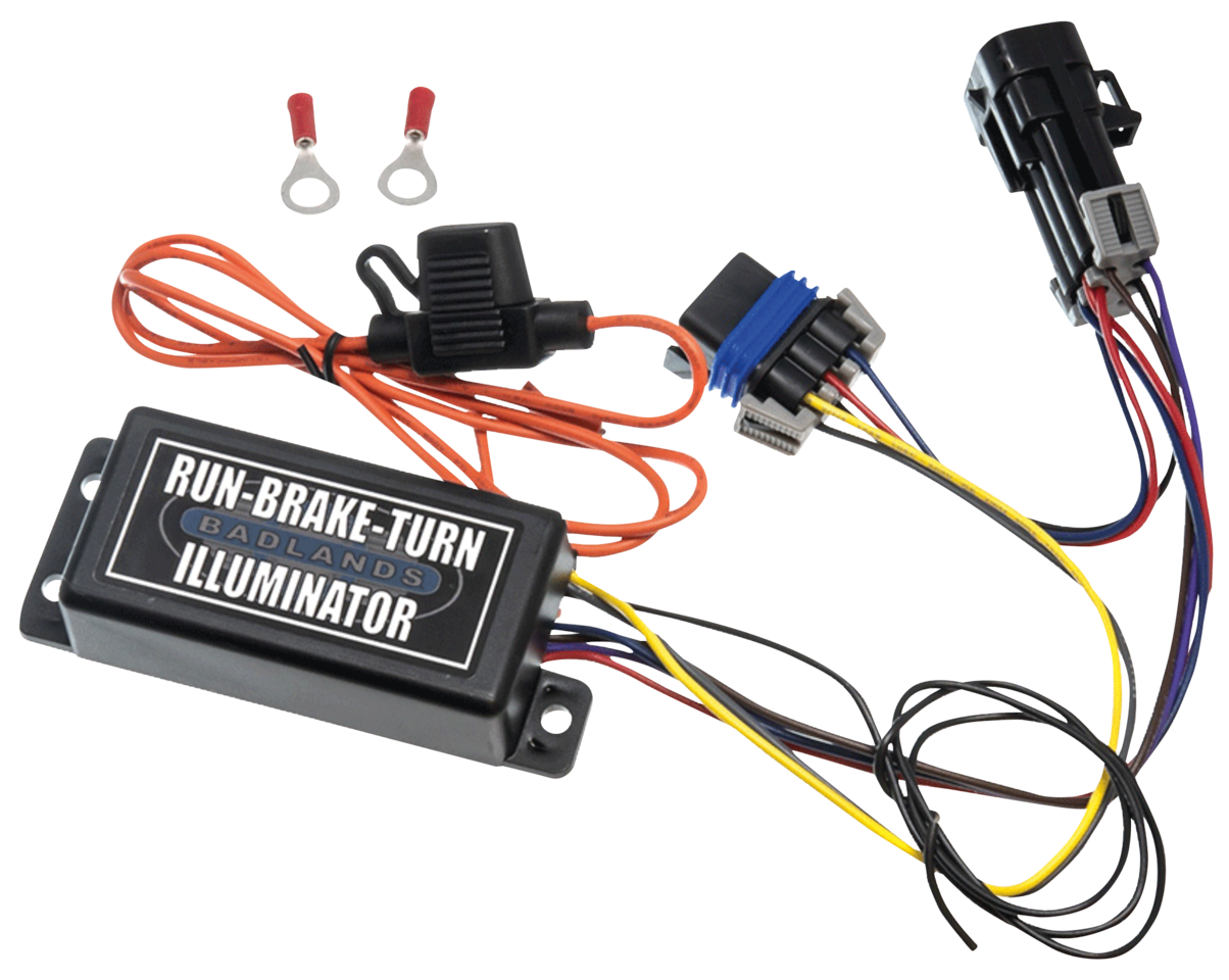 If you don’t want to be hit from the back when braking but want to be seen at all times you must install the Badlands Illuminator. The Illuminator gives you two extra taillights and two extra brake lights by using your stock, or any custom turn signals for these functions in combination with their normal purpose. You should be better safe than sorry, so get visible by fitting an Illuminator. This electronic gadget comes pre-wired and complete with easy-to-follow do it yourself instructions.