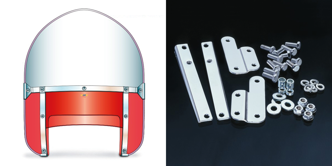Fits 41mm forks on 1949-1959 FL Hydra Glide and Duo Glide, Complete 1949-1959 style peaked top windshield kit, clear with red lowers