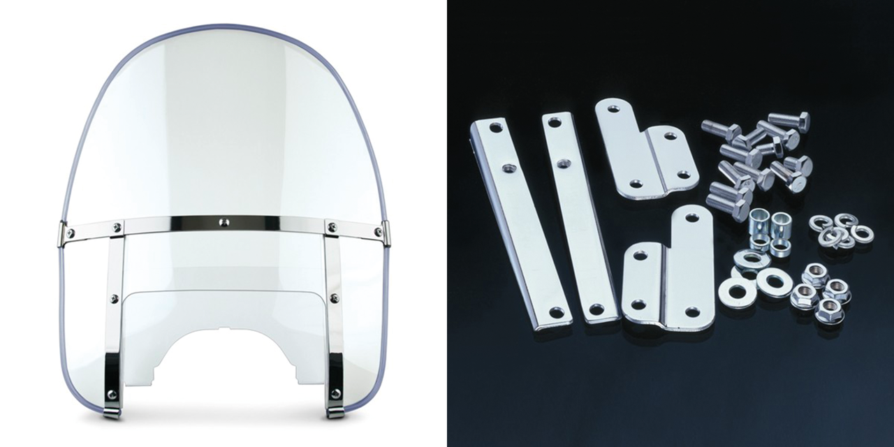 Fits 41mm forks on 1949-1959 FL Hydra Glide and Duo Glide, Complete 1960-1984 style round top windshield kit, clear