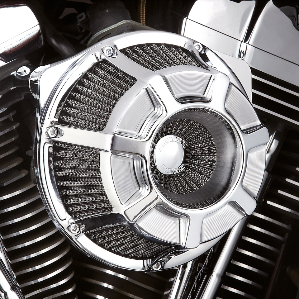 Fits all 1988 to present XL Sportster models with stock Keihin CV carburetor or cable operated Delphi Fuel Injection, Beveled, chrome, BEVELLED INVERTED A/C XL88-UP CHR, Arlen Ness