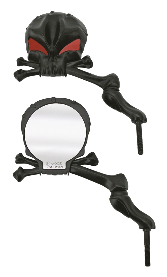 These Skull Mania mirrors are sold in sets of left and right and feature a swivel in the stem to allow positioning of the mirror head.