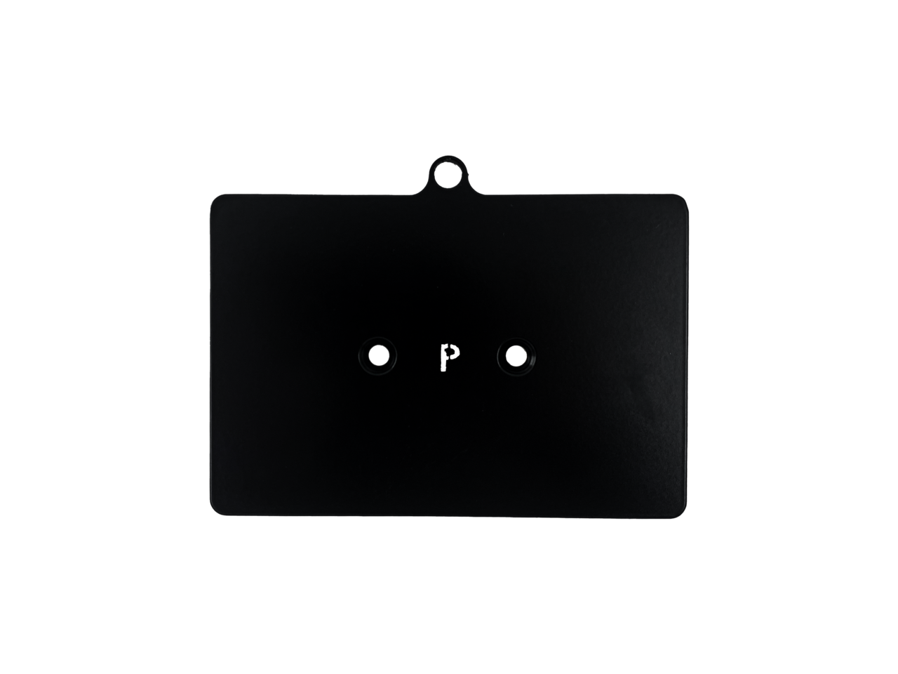License plate frame with a 5/16″ (8mm) hole to fit a license plate light or taillight. All made in Sweden out of Swedish steel and with a perfect black finish.