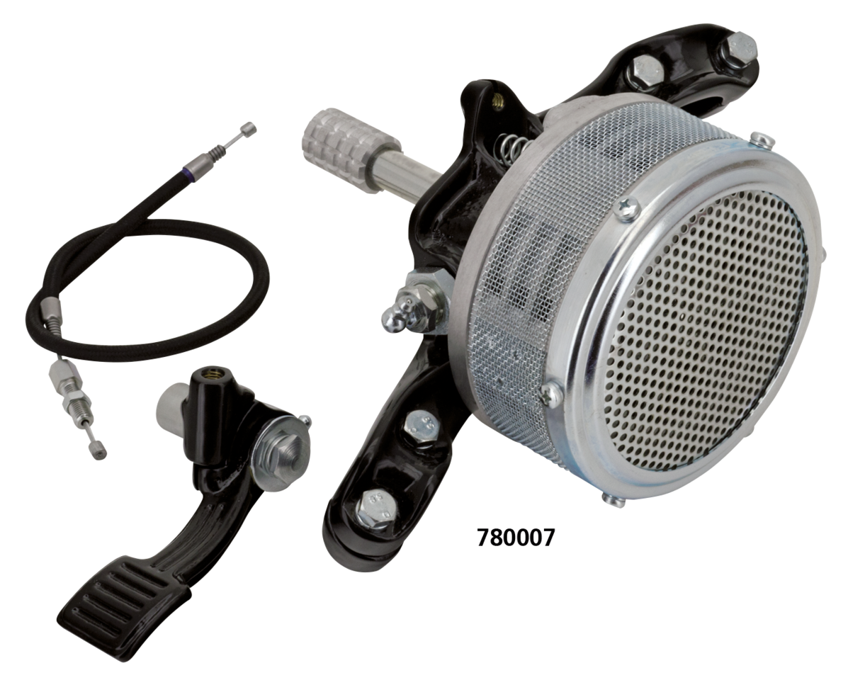These “Sterling” rear wheel sirens are an exact reproduction of the 1936 police sirens. According to the old accessory catalog “Sirens are positive in action and streamlined for Beauty”. Covers are made of polished cast aluminum. Bracket and foot lever are chrome plated drop forged steel. Sirens come complete with all necessary mounting brackets, foot lever cable or rod.