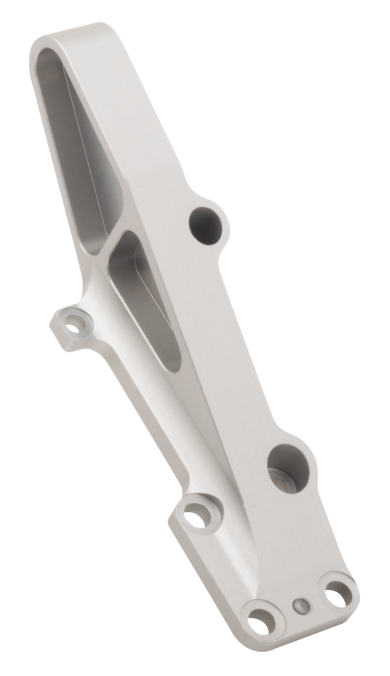 Caliper brackets for 40mm pitch Ducati-style Brembo calipers and 300mm discs, Left, clear anodized, Brembo P4 30/34C LH cal brckt f/Ohlins, Zodiac (Made in Europe)