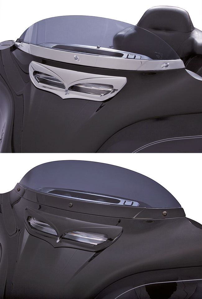 The Ciro windshield trim is a clean and classy piece, designed to work with the body lines of 2014 to present Harley-Davidson FLHTCU, FLHTCUL, FLHTK, FLHTKL & FLHTKSE Electra Glide, FLHX, FLHXS & FLHXSE Street Glide and FLHTCUTG Tri-Glide models and smooth out the front end of your bike. Specially designed to flow with the natural accent lines of the fairing.