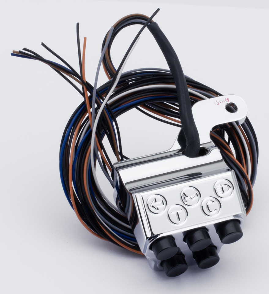 Rebuffini’s “Ellipse” and “Comet” controls are not compatible with stock switch housings, you will have to install them with these matching plain 2 button switches, or as 3-,4- and 5 button switch blocks in plain or with EC-compliant engraved symbols. Also available in a special version for use with the audio system as found on Touring models. All these switches are designed for use on 1996 and later models but require the separate purchase of “The Switchbox” CAN-bus module ZPN746880 for CAN-Bus (HD-Link) equipped 2011 to present Softail, 2012 to present Dyna and 2014 to present Sportster and Touring.