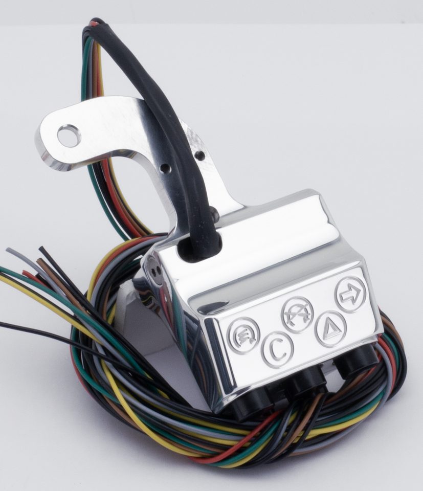Rebuffini’s “Ellipse” and “Comet” controls are not compatible with stock switch housings, you will have to install them with these matching plain 2 button switches, or as 3-,4- and 5 button switch blocks in plain or with EC-compliant engraved symbols. Also available in a special version for use with the audio system as found on Touring models. All these switches are designed for use on 1996 and later models but require the separate purchase of “The Switchbox” CAN-bus module ZPN746880 for CAN-Bus (HD-Link) equipped 2011 to present Softail, 2012 to present Dyna and 2014 to present Sportster and Touring.