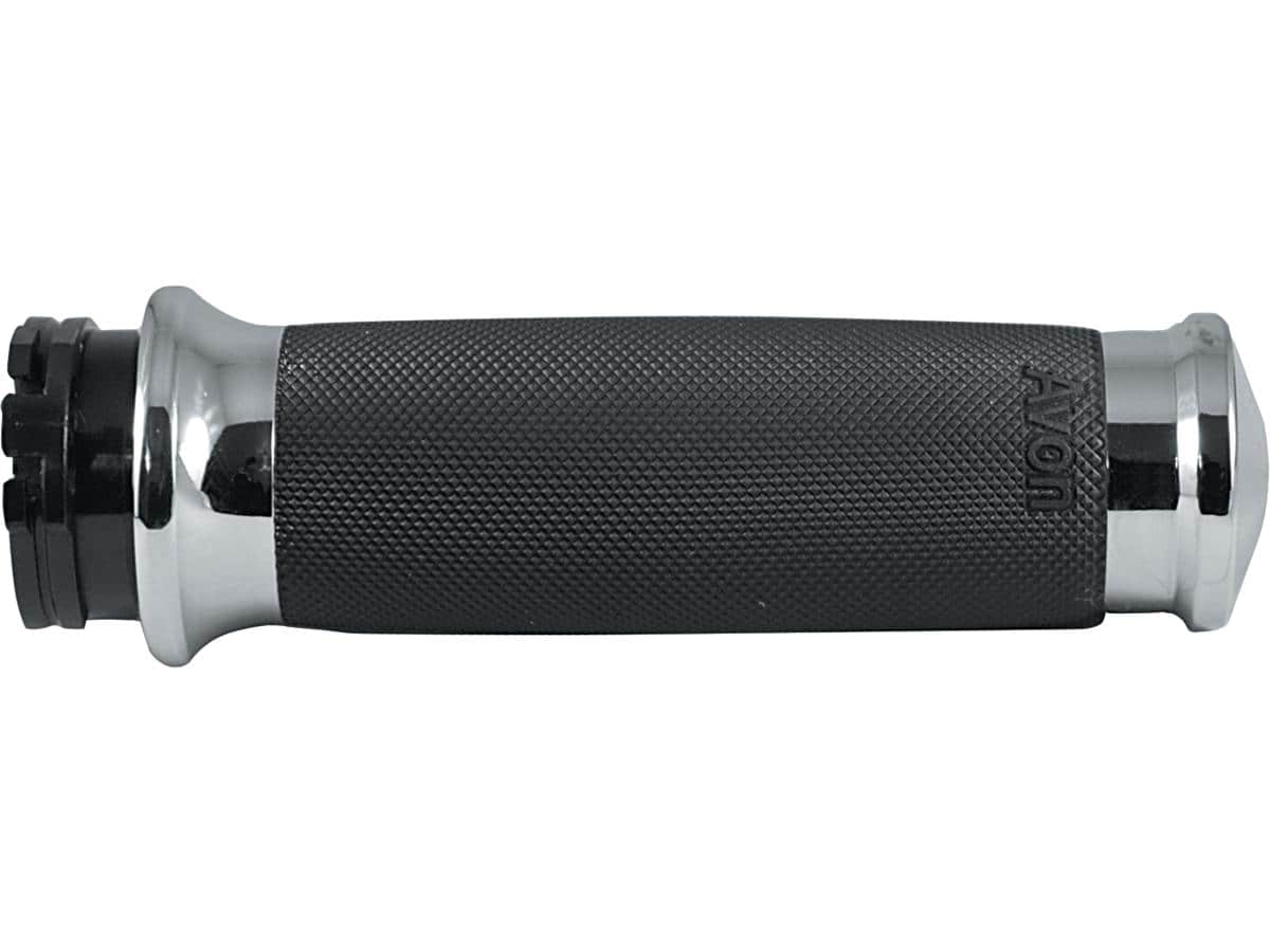 Avon Performance Grips, Custom Contour Grips Black Rubber Chrome 1″ Throttle By Wire, 08-24 Touring, 25 FLHRXS, (except 23 FLTRKSEANV, 23-24 FLHXSE, 23-24 FLTRXSE, 24 FLHX, 24 FLTRX, 24 FLTRXSTSE), 09-25 Trike, 16-24 Softail, 11 FLSTSE2, 12 FLSTSE3, 13-14 FXSBSE, 14-15 FLSTNSE, 16-17 FXDLS