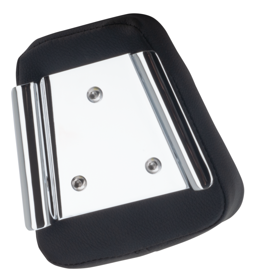 Custom tapered style pad with chrome clamp plate for round tube tapered style sissy bar