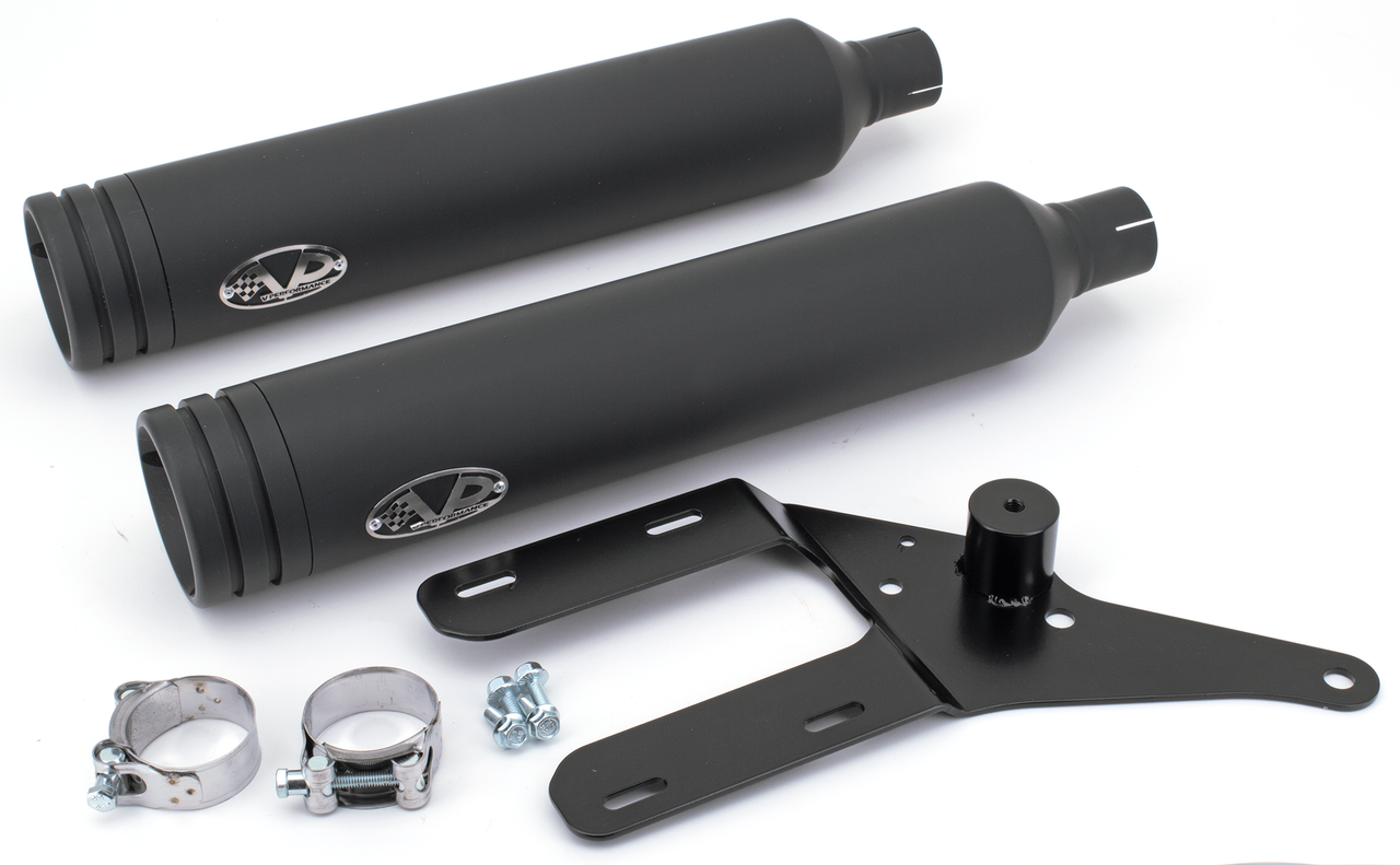 Fits FXST Standard 2021-2024 and FLSL Slim 2021, approved for Euro-5 emission, Ceramic black 80mm diameter slip-on muffler set with straight Double-Ring end caps, D-Ring Black slip-ons FXST20-up, V-Performance