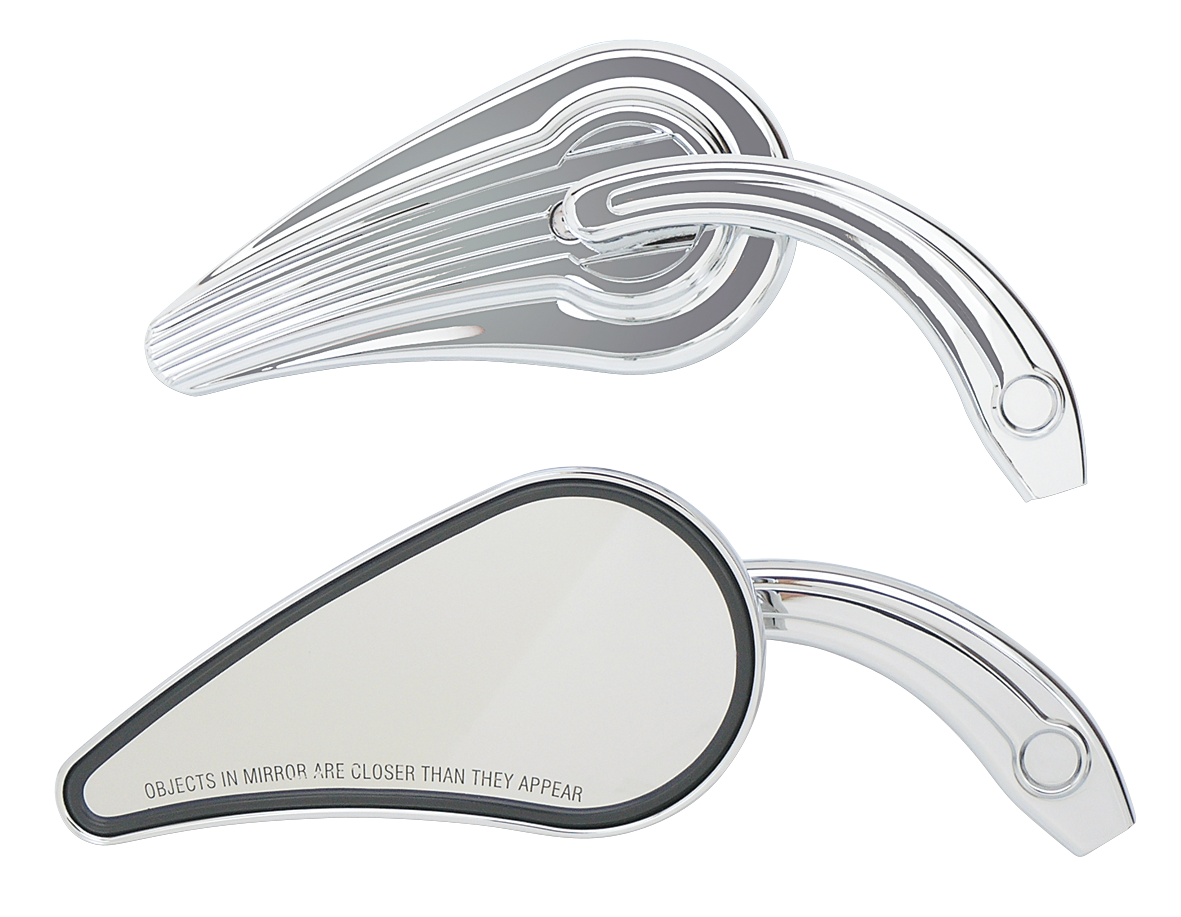 The classic “Teardrop” design taken a giant step ahead resulted in these “Dragster” mirrors with their uniquely detailed stems and stepped and grooved housing. CNC machined from billet aluminum. Left and right side mirrors are sold individually.
