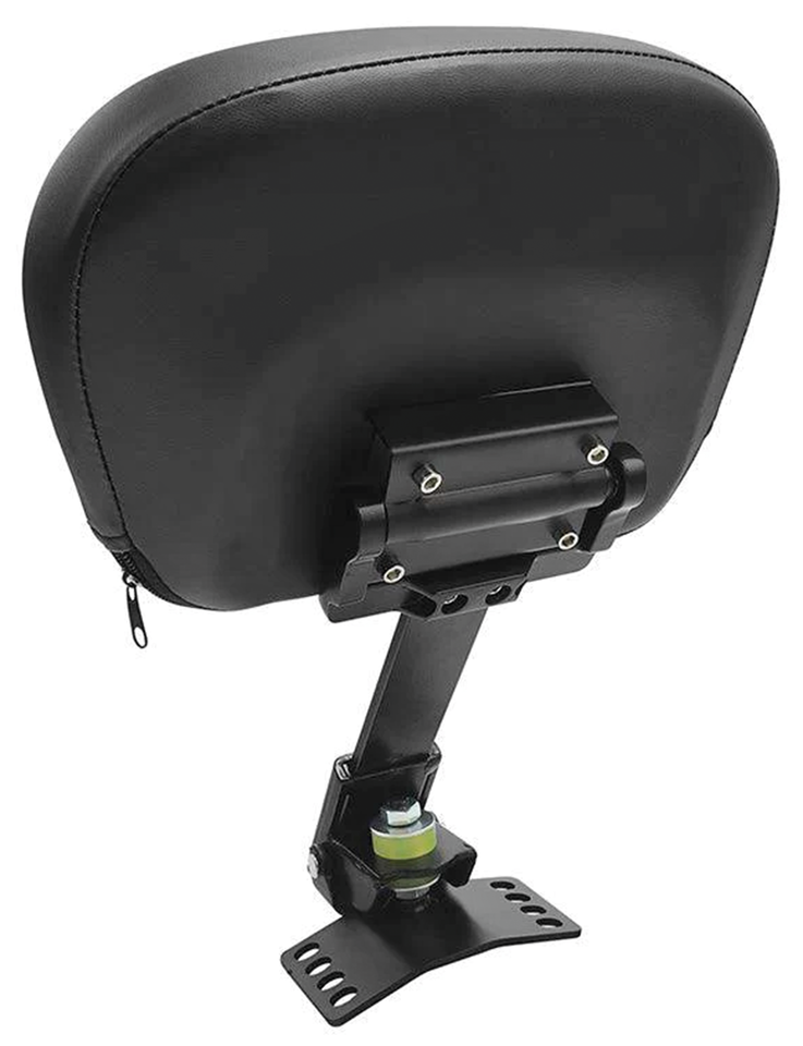 Height and rake adjustable driver backrest for use with OEM style one-piece slotted buddy seat. Back pad can also fold down completely forward to make it easy for your passenger to mount.