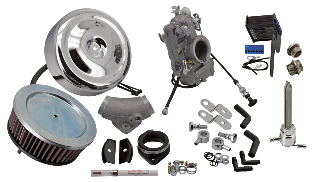Very complete kits with a S&S Super E or Mikuni HSR42 carburetor to convert your Fuel Injected bike to carburetor. Includes fuel valve, fuel valve adapter, ignition module or EFI-to-carburetor ECM. Models with throttle by wire require the separate purchase of a throttle grip and throttle and idle cables.