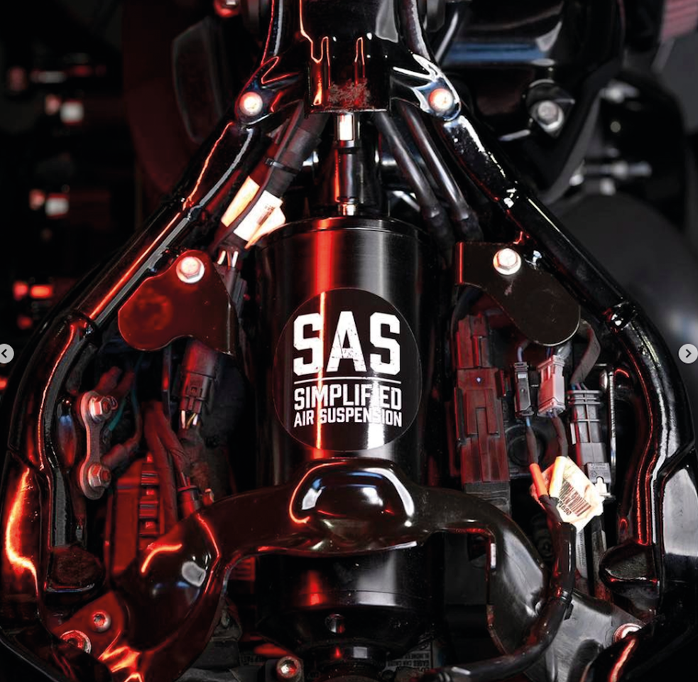 The SAS Air Suspension has no compressor to mount, no hoses to run, no fittings to fail & is completely plug and play. Absolutely the easiest install and allowing you to raise and lower your rear end at the touch of a button. Add air pressure to improve ride quality, during changing road conditions or while hauling added weight. Add extra air to compensate for your passenger and then release some for solo riding. You can also release all of the air and park your bike down on the ground. Adjustable air pressure makes for a smooth comfortable ride under any condition. No more bottoming out! Comes with a black handlebar switch and a remote filtered air breather that keeps compressor clean and dry. Comes with a 5 year parts warranty and machined parts are warranted for life.