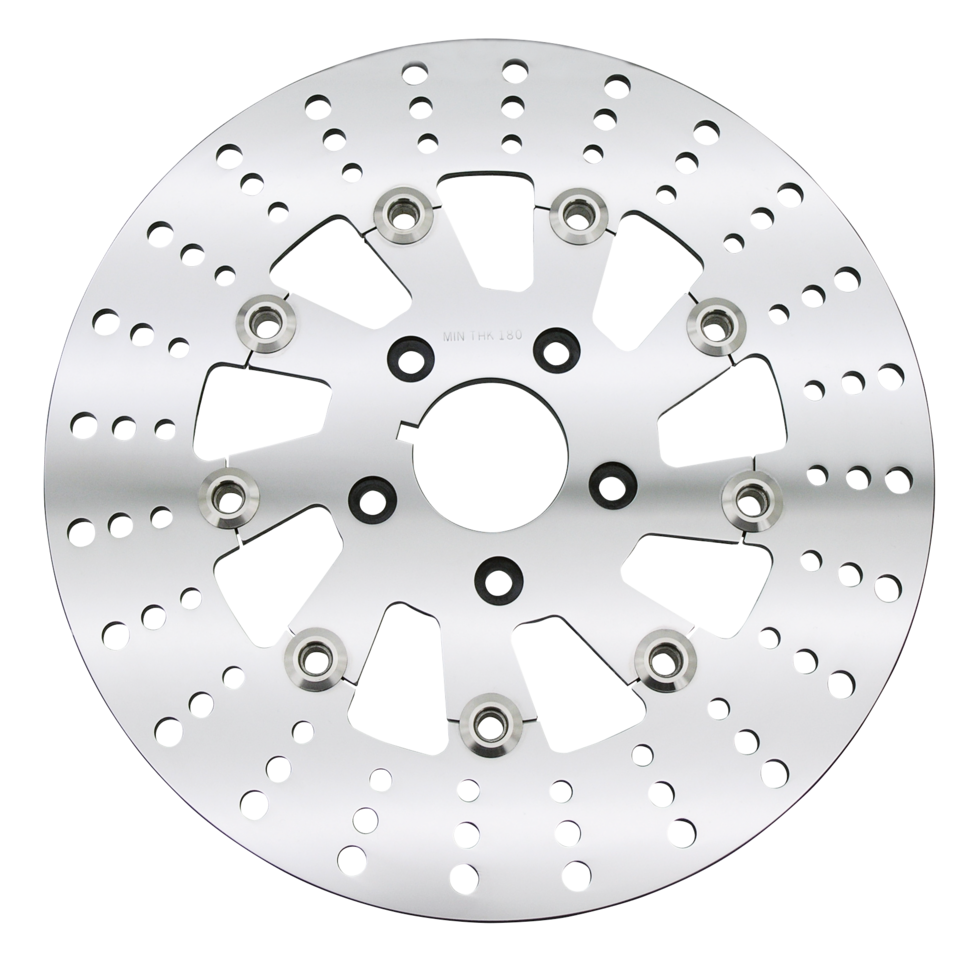 Another exclusive from Zodiac, Lightweight High-Performance Stainless Steel disc brake rotors that provide maximum braking performance. These “Top of the Line” rotors are manufactured to the highest standards using the best materials available. Can be used in combination with the stock calipers. If you really want ultimate stopping power, these rotors should be used in combination with our 4 piston G.M.A. calipers or 4 or 6 piston Billet calipers. The combination of these disc brake rotors with the 4 or 6 piston calipers provides consistently smooth braking power while allowing the disc to expand without any distortion even under high heat conditions from extreme hard braking. These Full-Floating mirror shine polished disc rotors come standard with lightning holes.