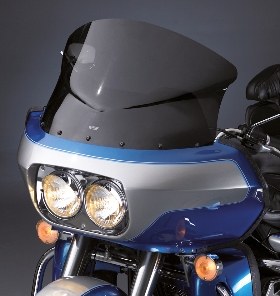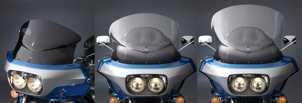 National Cycle’s innovative VStream Windscreen gets its name from the unique shape and dimensional contours designed and engineered into the windscreen. The patented “V” profile helps push the turbulent wind out and away from the side of the rider’s head, producing a quieter and more comfortable riding experience for both the rider and the passenger. VStream Windscreens are designed specifically for each model bike to ensure optimum performance and perfect fit using the OEM mounting hardware. Windscreens are made from the finest windshield material in the world, 4.0mm thick Lexan polycarbonate. This material is 20 times more impact resistant than acrylic or other plastic windshields, reason why National cycle gives a 3-year warranty against breakage. Additionally this polycarbonate features National Cycle’s exclusive Quantum coating. This provides 10 times better scratch resistance than any other windshield material on the market. The Tall and Standard sizes are outstanding high-speed highway performers for FLHT/FLHX riders. Enjoy a significant improvement in wind management and riding comfort. If you want a custom look and a lower profile, you will like the performance of the VStream models in Low or Ultra Low. Height is measured from the bottom to the top on the center of the screen.