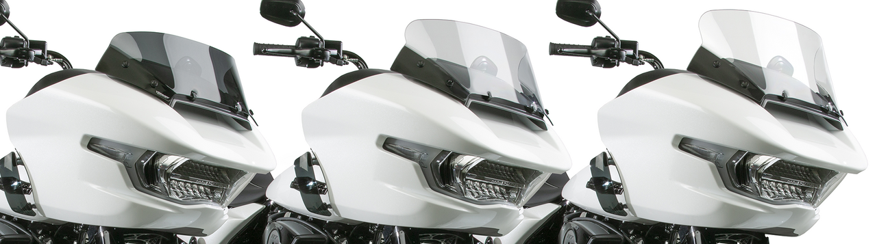 National Cycle’s innovative VStream Windscreen gets its name from the unique shape and dimensional contours designed and engineered into the windscreen. The patented “V” profile helps push the turbulent wind out and away from the side of the rider’s head, producing a quieter and more comfortable riding experience for both the rider and the passenger. VStream Windscreens are designed specifically for each model bike to ensure optimum performance and perfect fit using the OEM mounting hardware. Windscreens are made from the finest windshield material in the world, 4.0mm thick Lexan polycarbonate. This material is 20 times more impact resistant than acrylic or other plastic windshields, reason why National cycle gives a 3-year warranty against breakage. Additionally this polycarbonate features National Cycle’s exclusive Quantum coating. This provides 10 times better scratch resistance than any other windshield material on the market. The Tall and Standard sizes are outstanding high-speed highway performers for FLHT/FLHX riders. Enjoy a significant improvement in wind management and riding comfort. If you want a custom look and a lower profile, you will like the performance of the VStream models in Low or Ultra Low. Height is measured from the bottom to the top on the center of the screen.