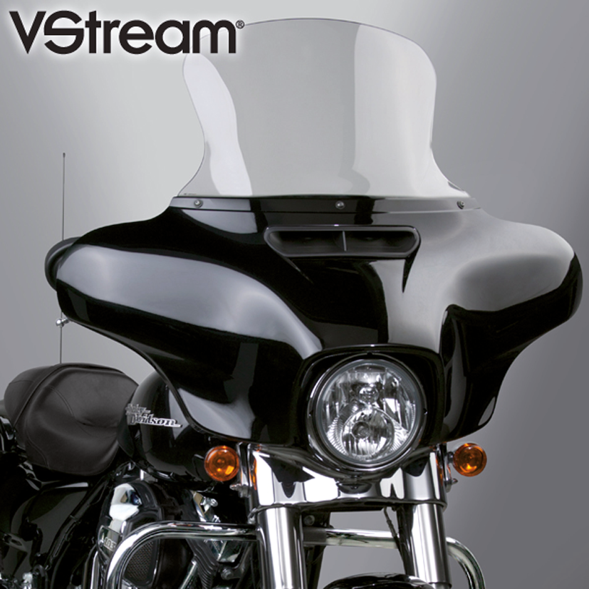 National Cycle’s innovative VStream Windscreen gets its name from the unique shape and dimensional contours designed and engineered into the windscreen. The patented “V” profile helps push the turbulent wind out and away from the side of the rider’s head, producing a quieter and more comfortable riding experience for both the rider and the passenger. VStream Windscreens are designed specifically for each model bike to ensure optimum performance and perfect fit using the OEM mounting hardware. Windscreens are made from the finest windshield material in the world, 4.0mm thick Lexan polycarbonate. This material is 20 times more impact resistant than acrylic or other plastic windshields, reason why National cycle gives a 3-year warranty against breakage. Additionally this polycarbonate features National Cycle’s exclusive Quantum coating. This provides 10 times better scratch resistance than any other windshield material on the market. The Tall and Standard sizes are outstanding high-speed highway performers for FLHT/FLHX riders. Enjoy a significant improvement in wind management and riding comfort. If you want a custom look and a lower profile, you will like the performance of the VStream models in Low or Ultra Low. Height is measured from the bottom to the top on the center of the screen.